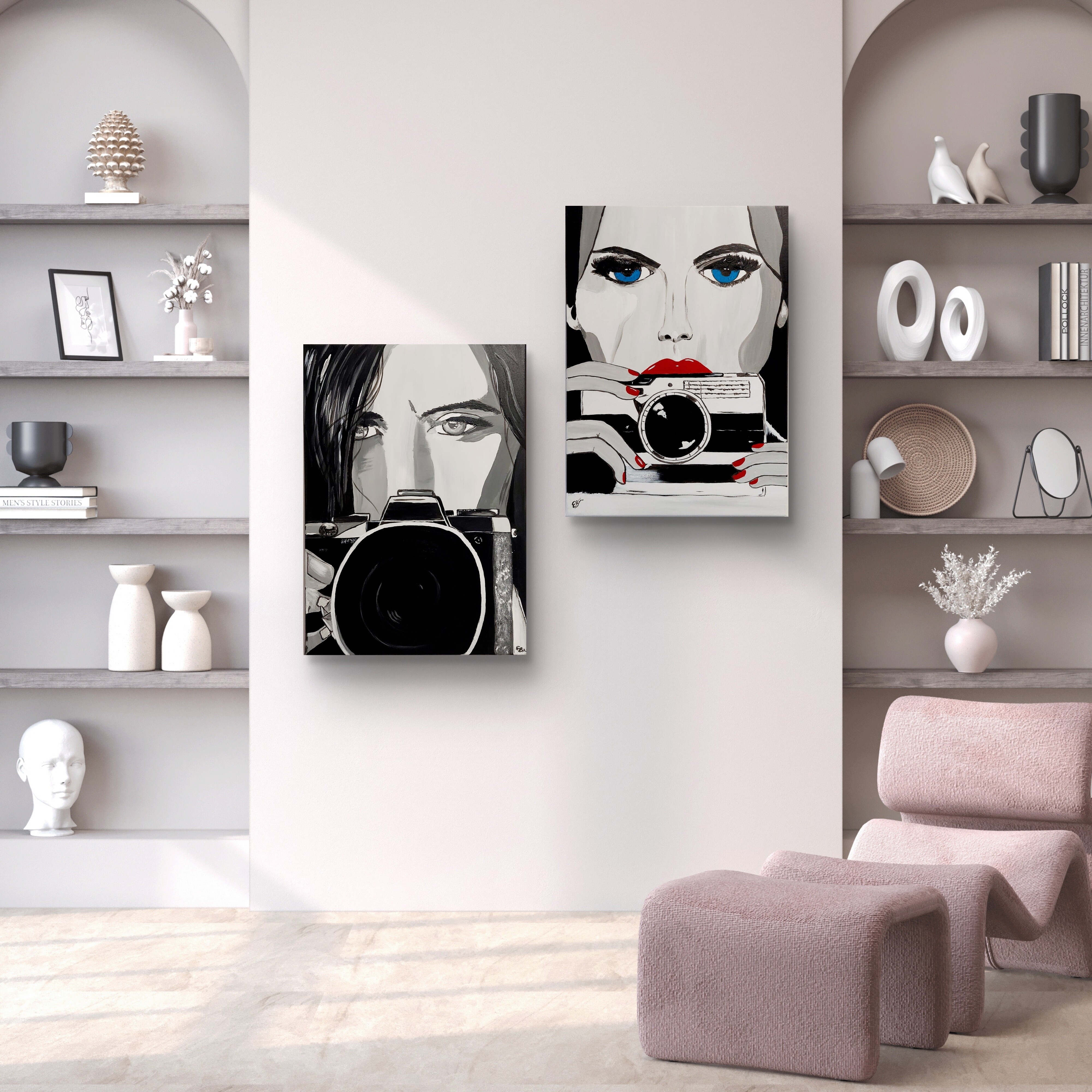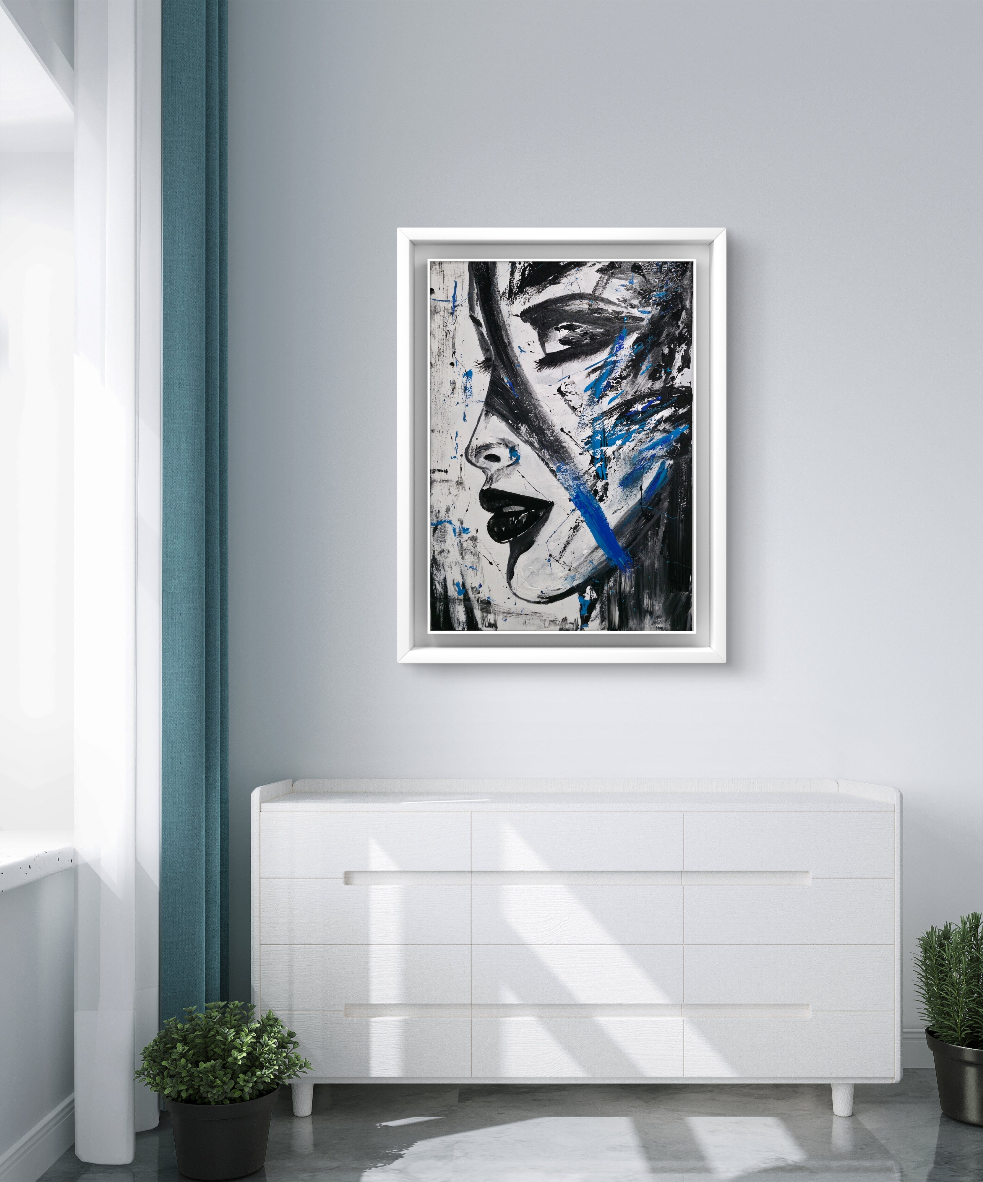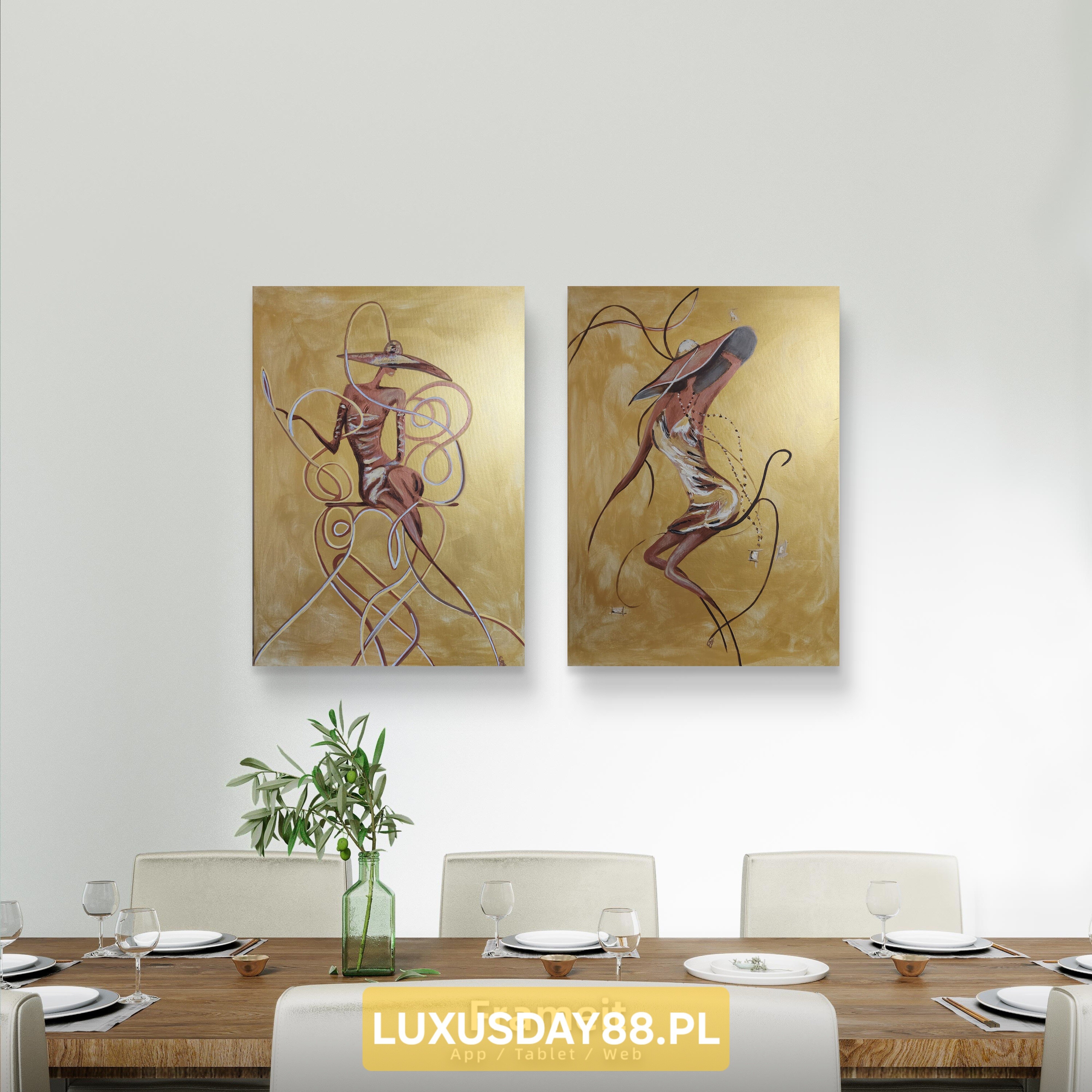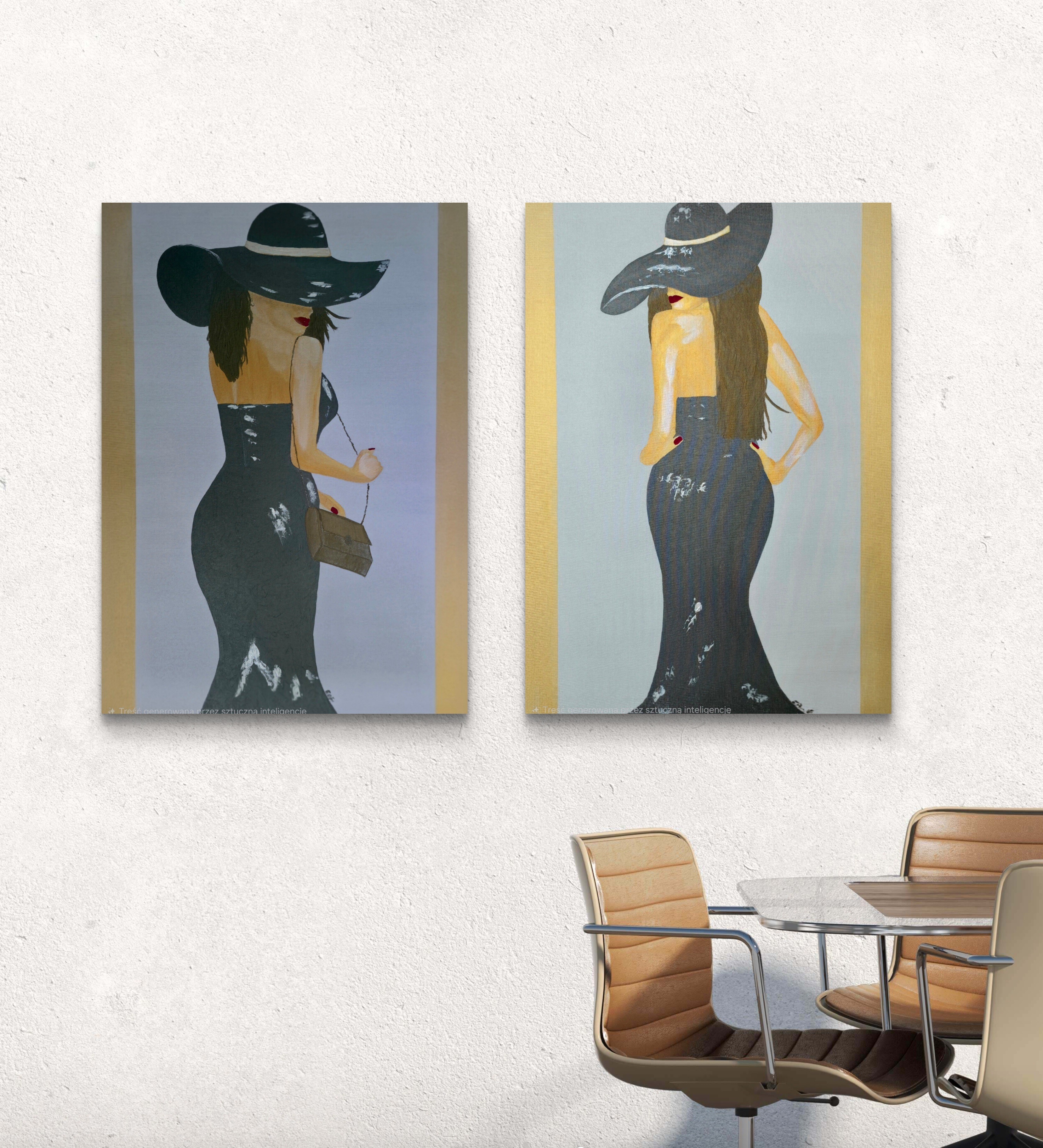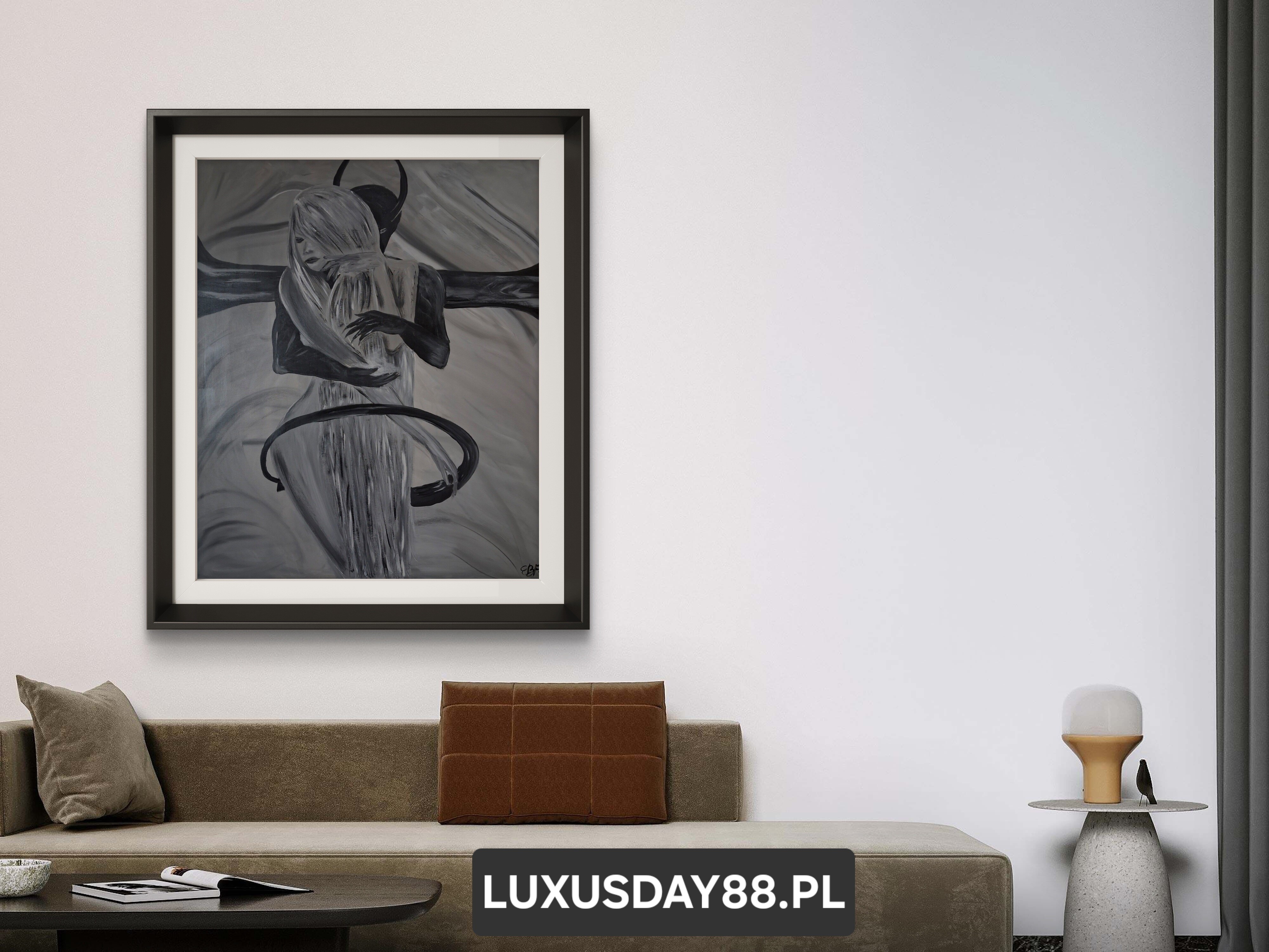 Wizualizacja obrazów w nowoczesnym wnętrzu w oprawie bądź bez.