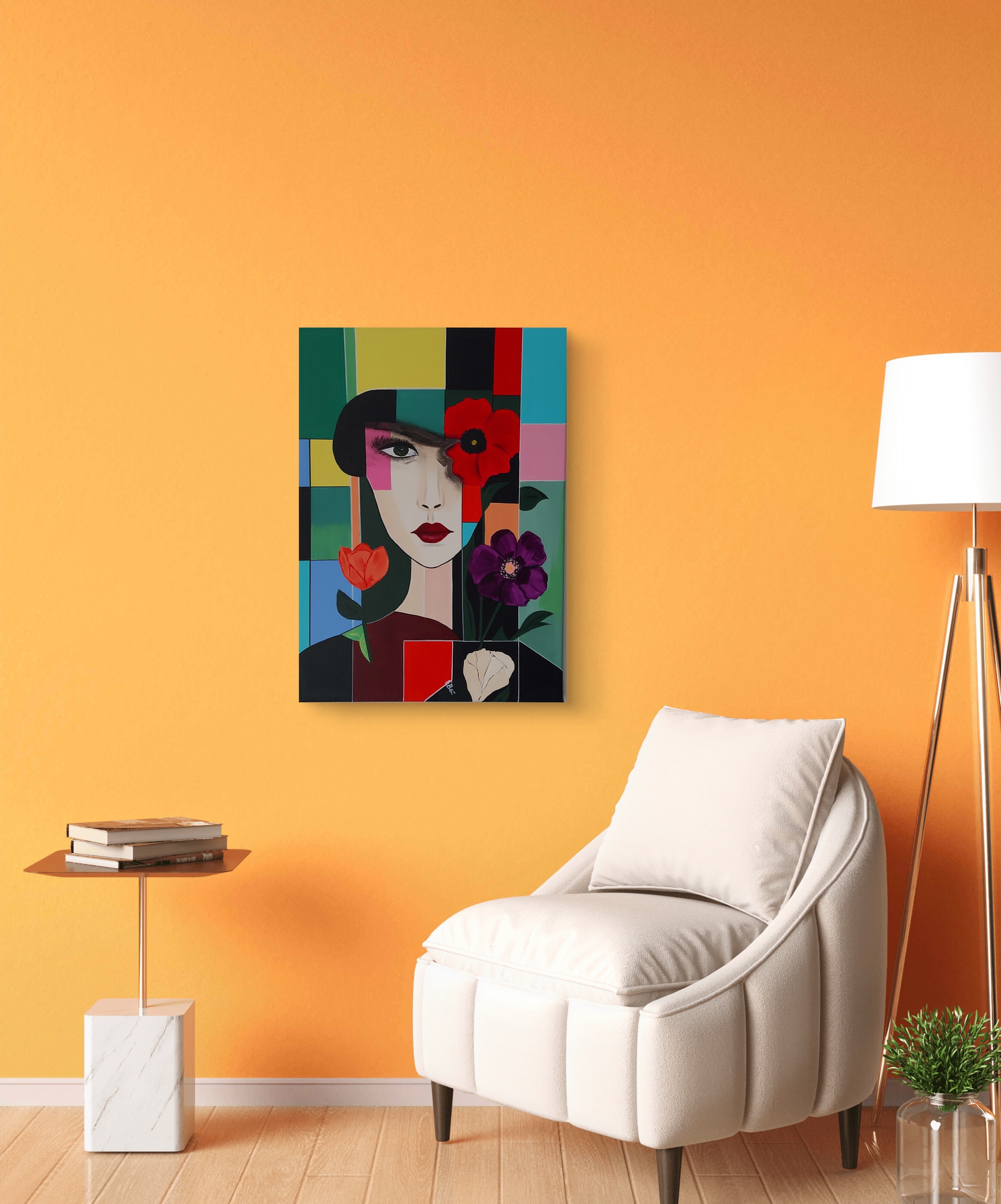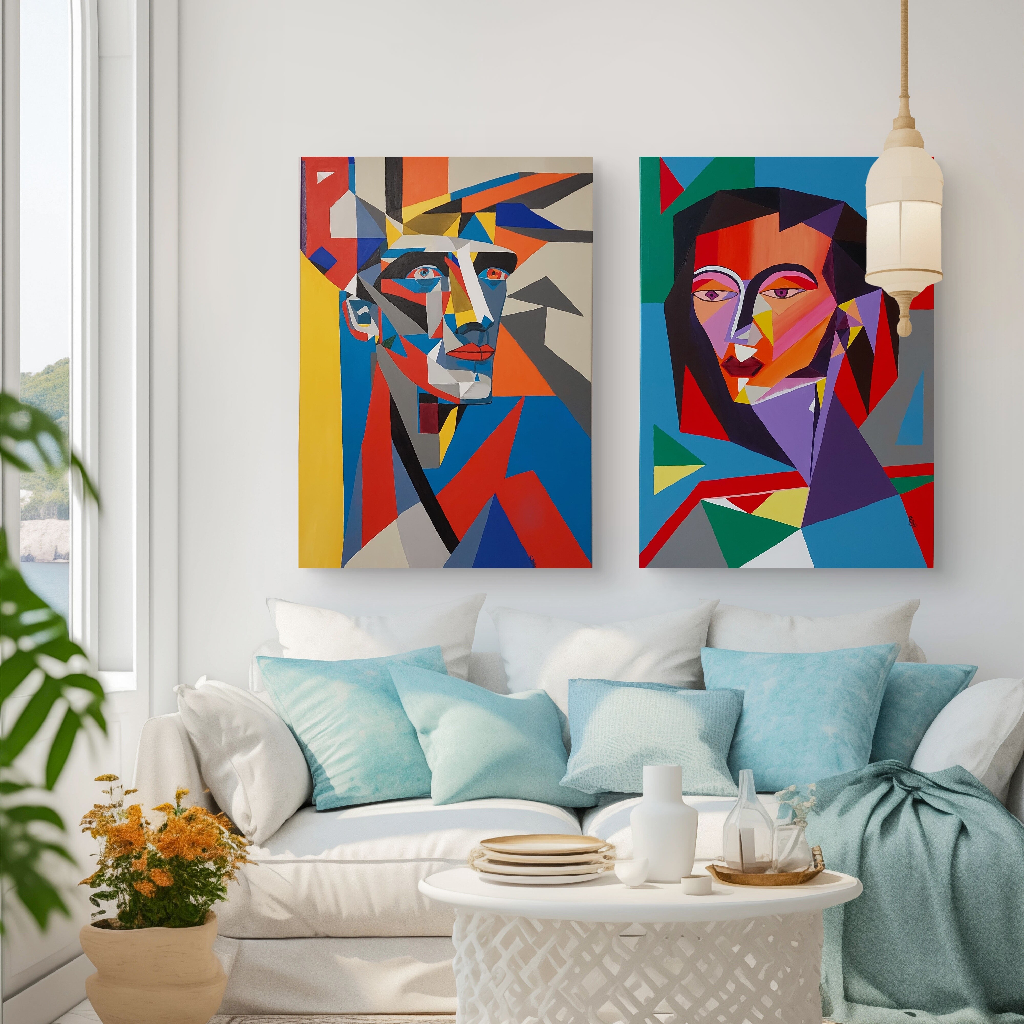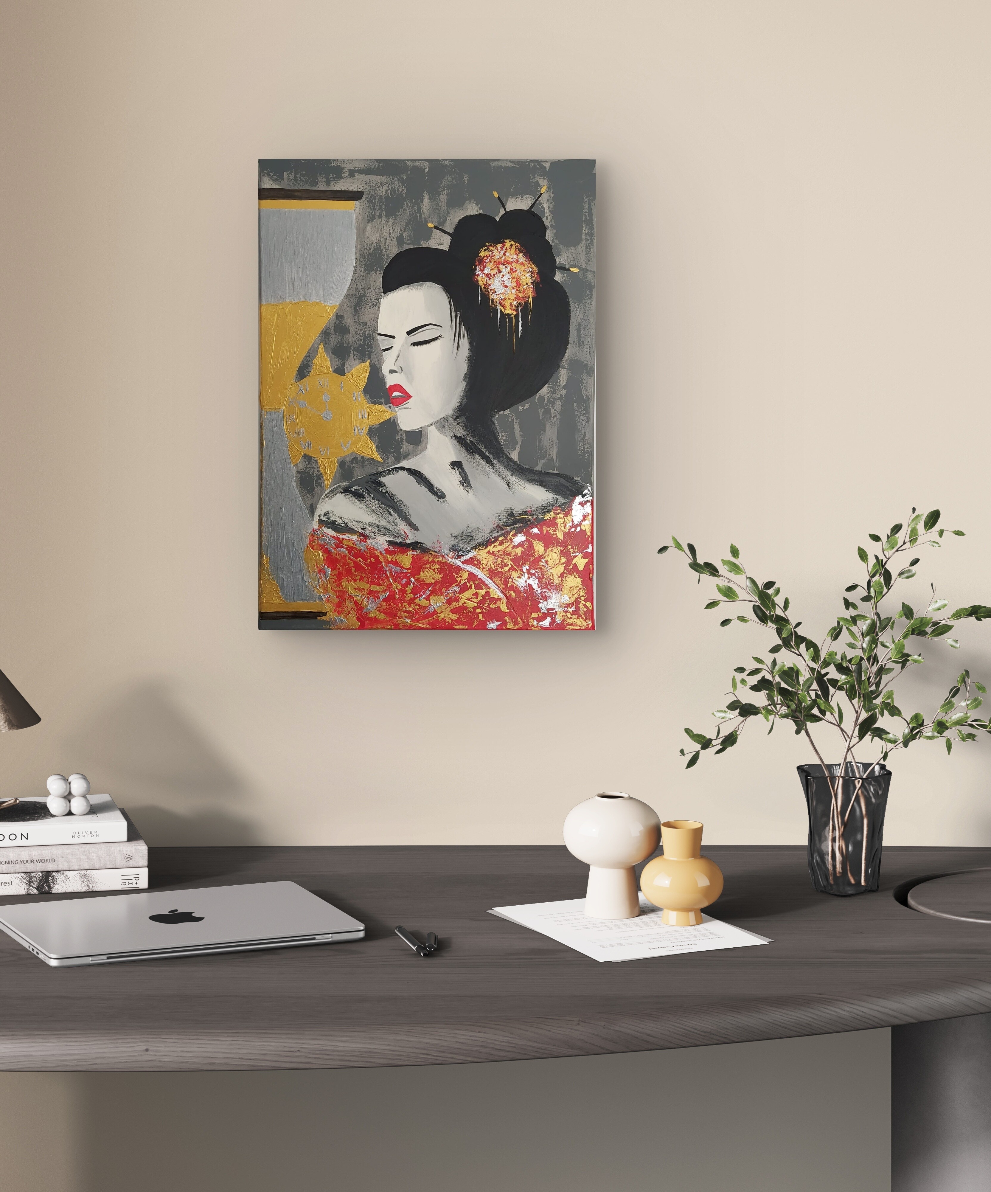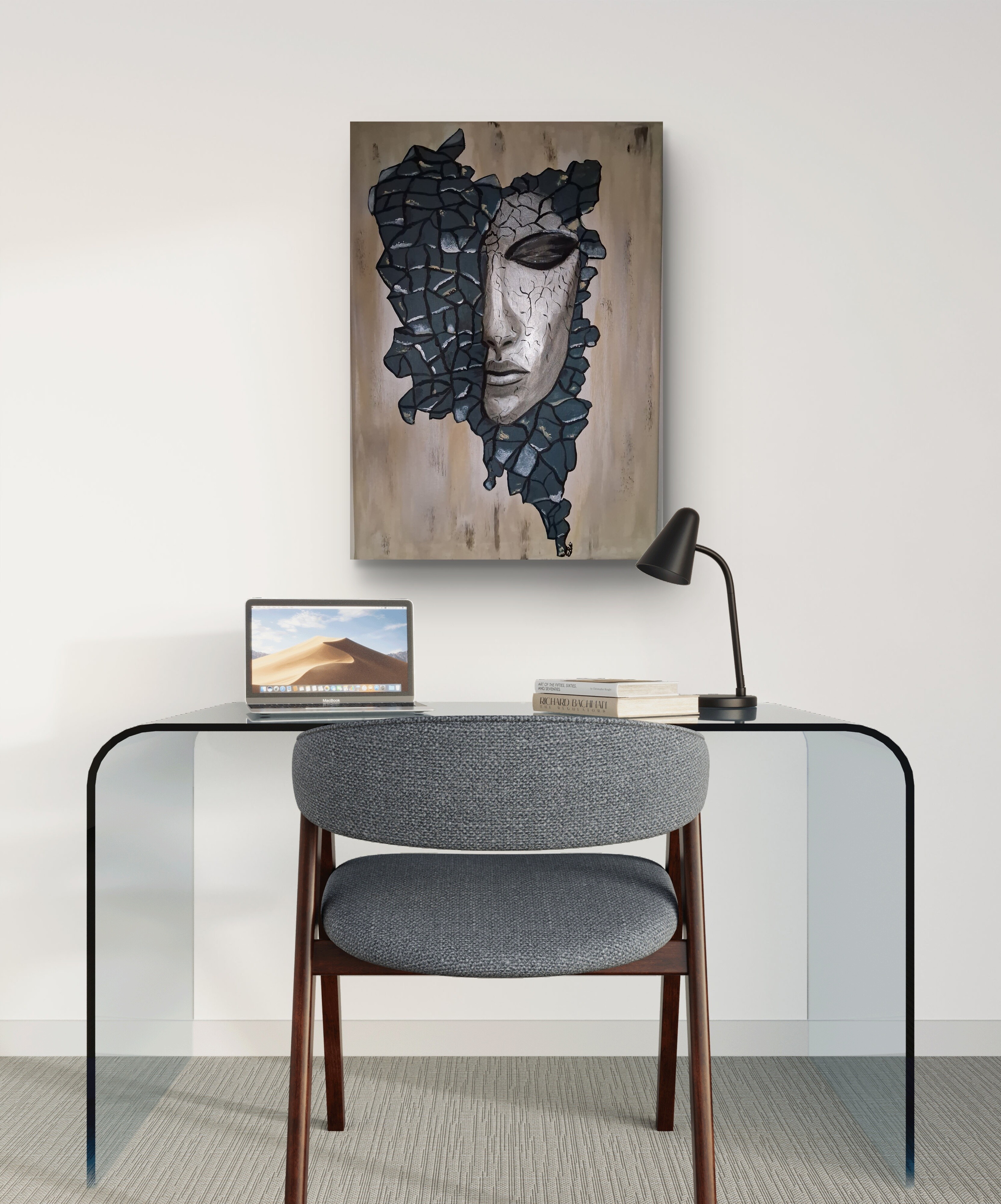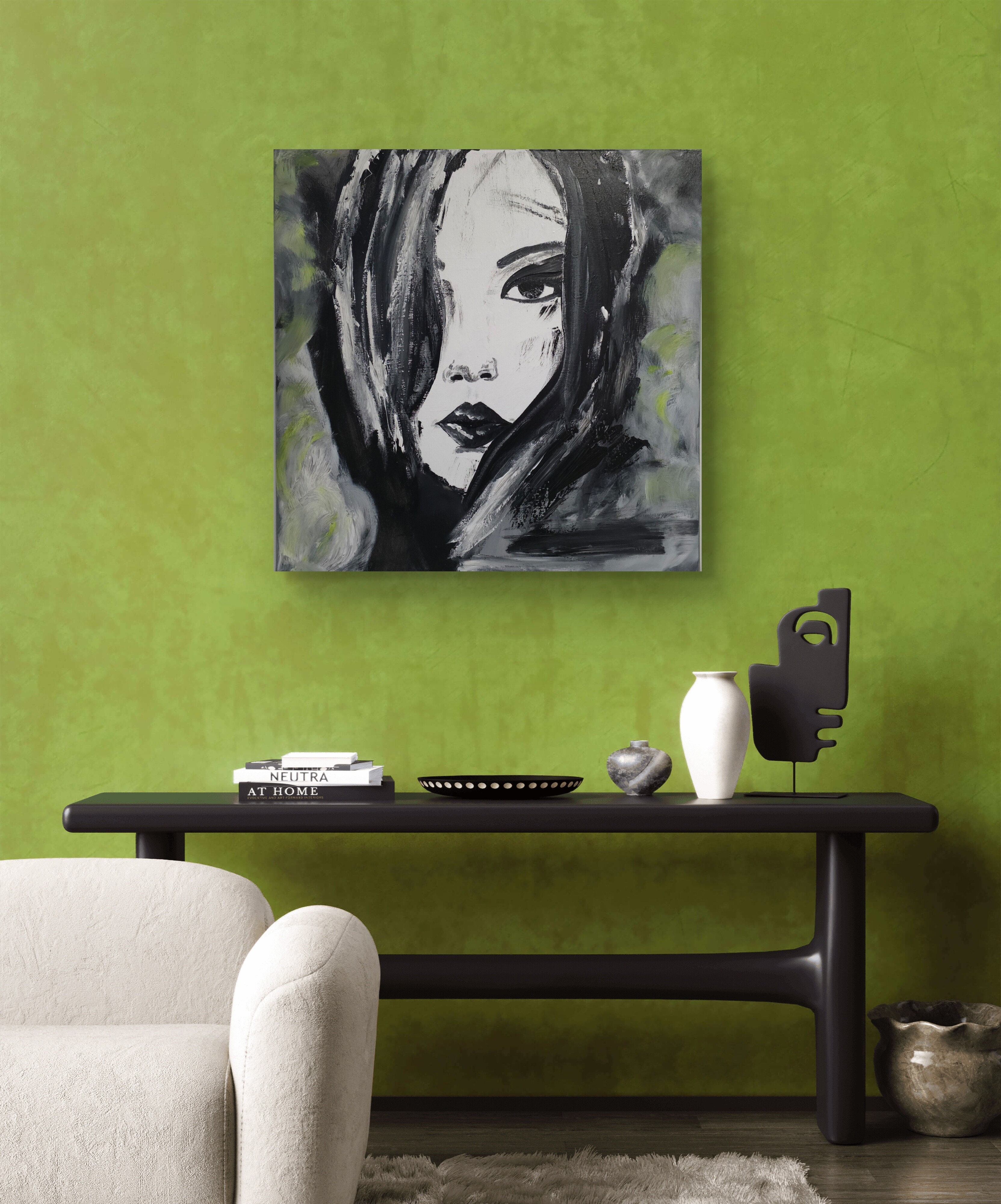 Wizualizacja obrazów w nowoczesnym wnętrzu w oprawie bądź bez.