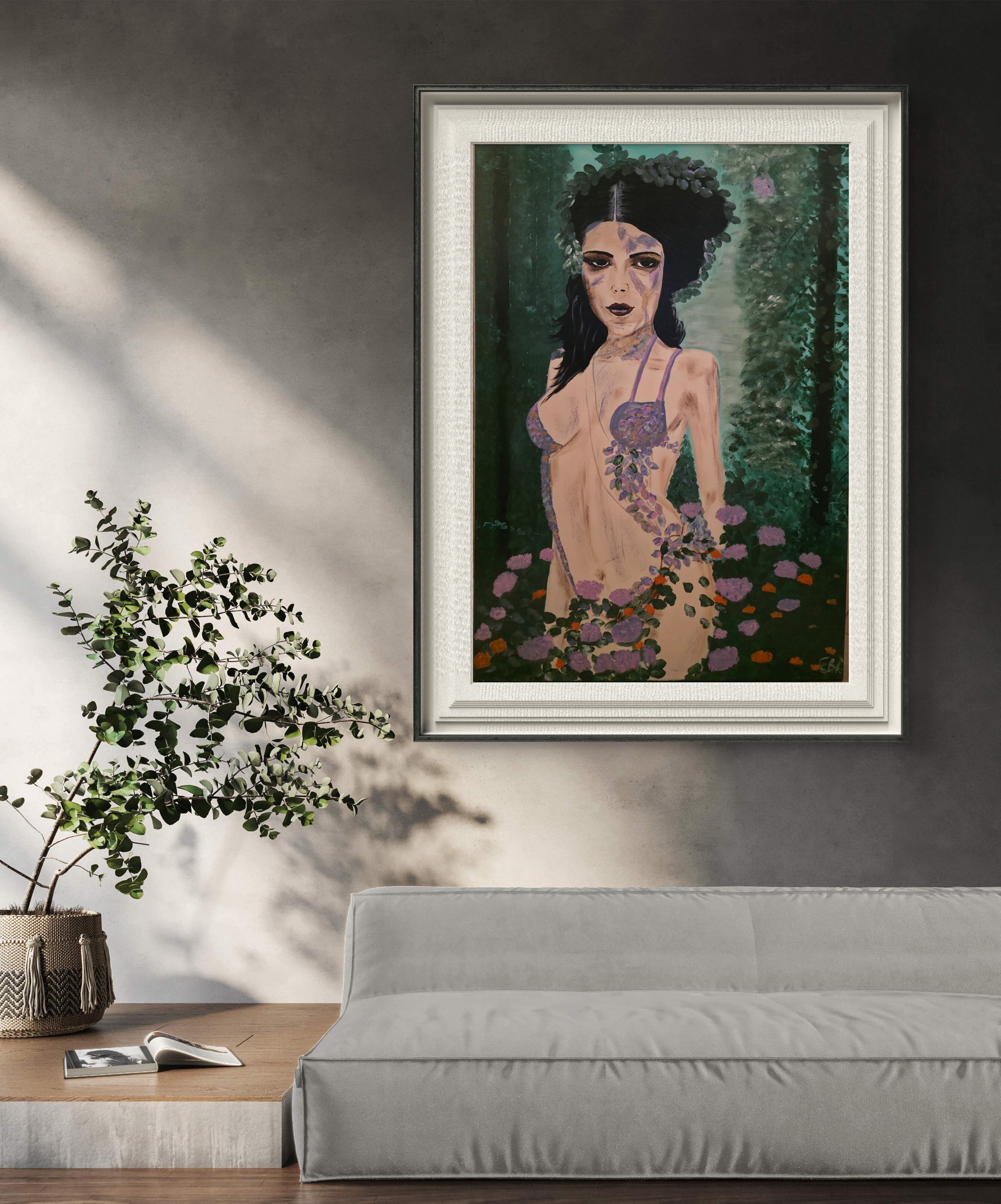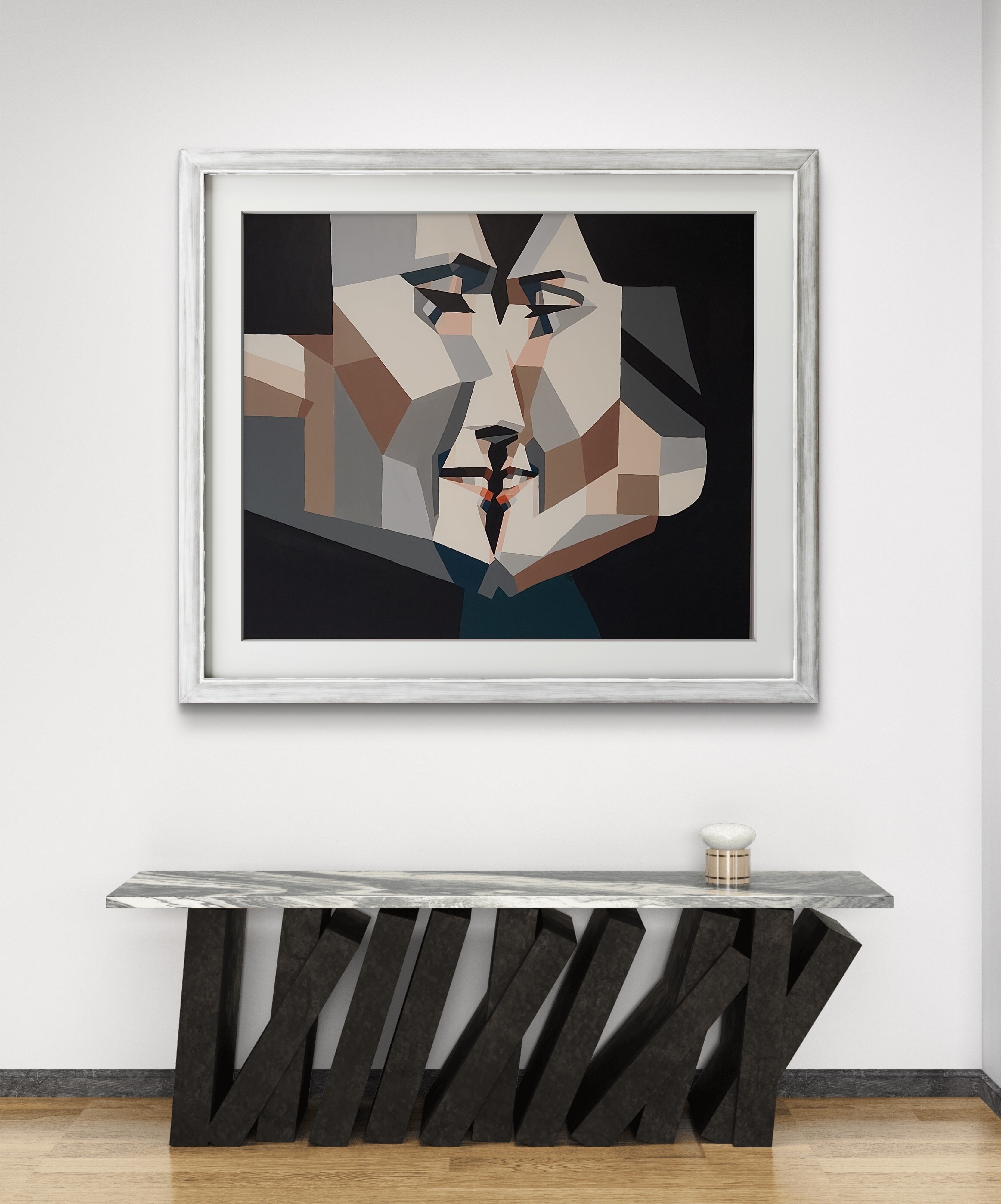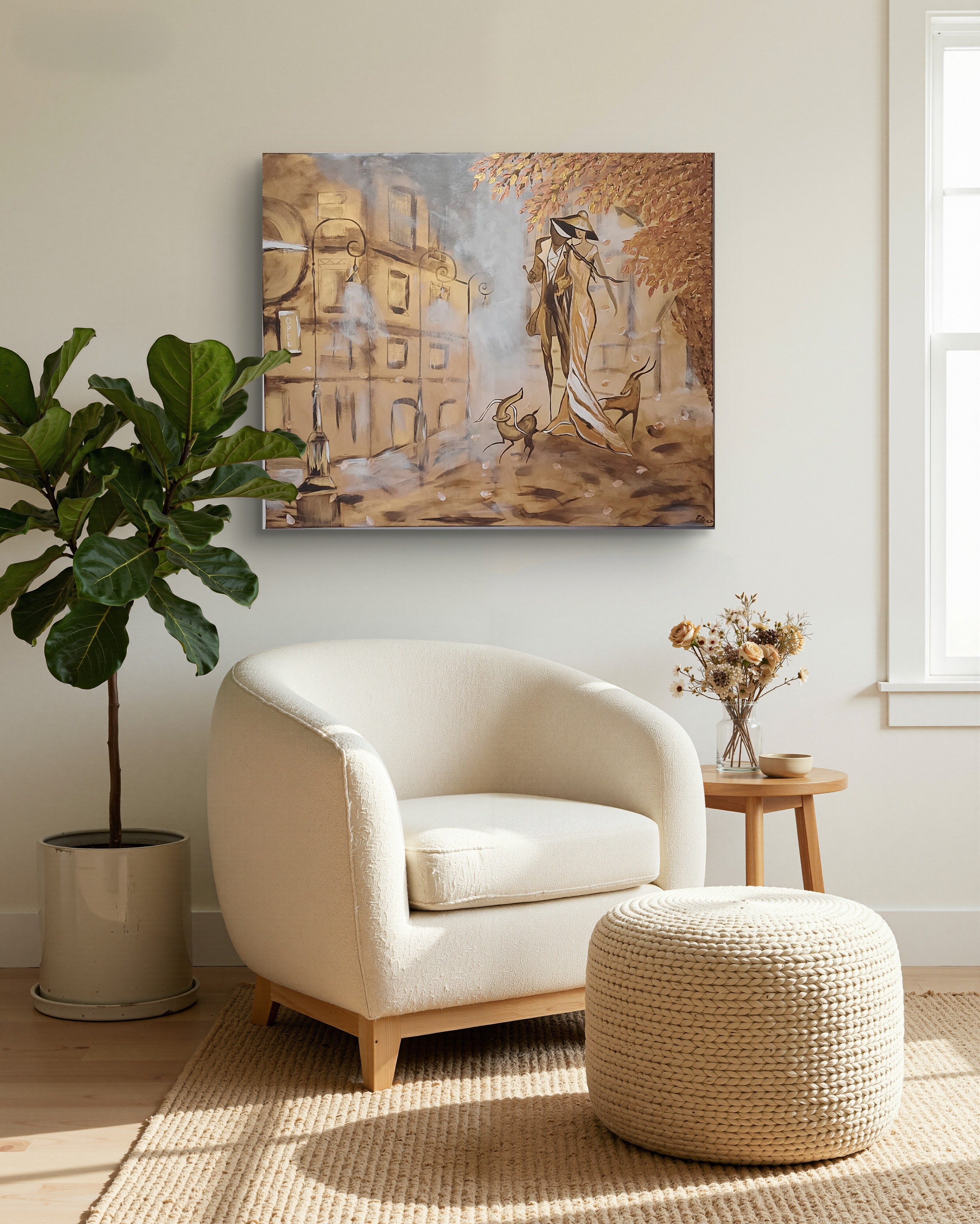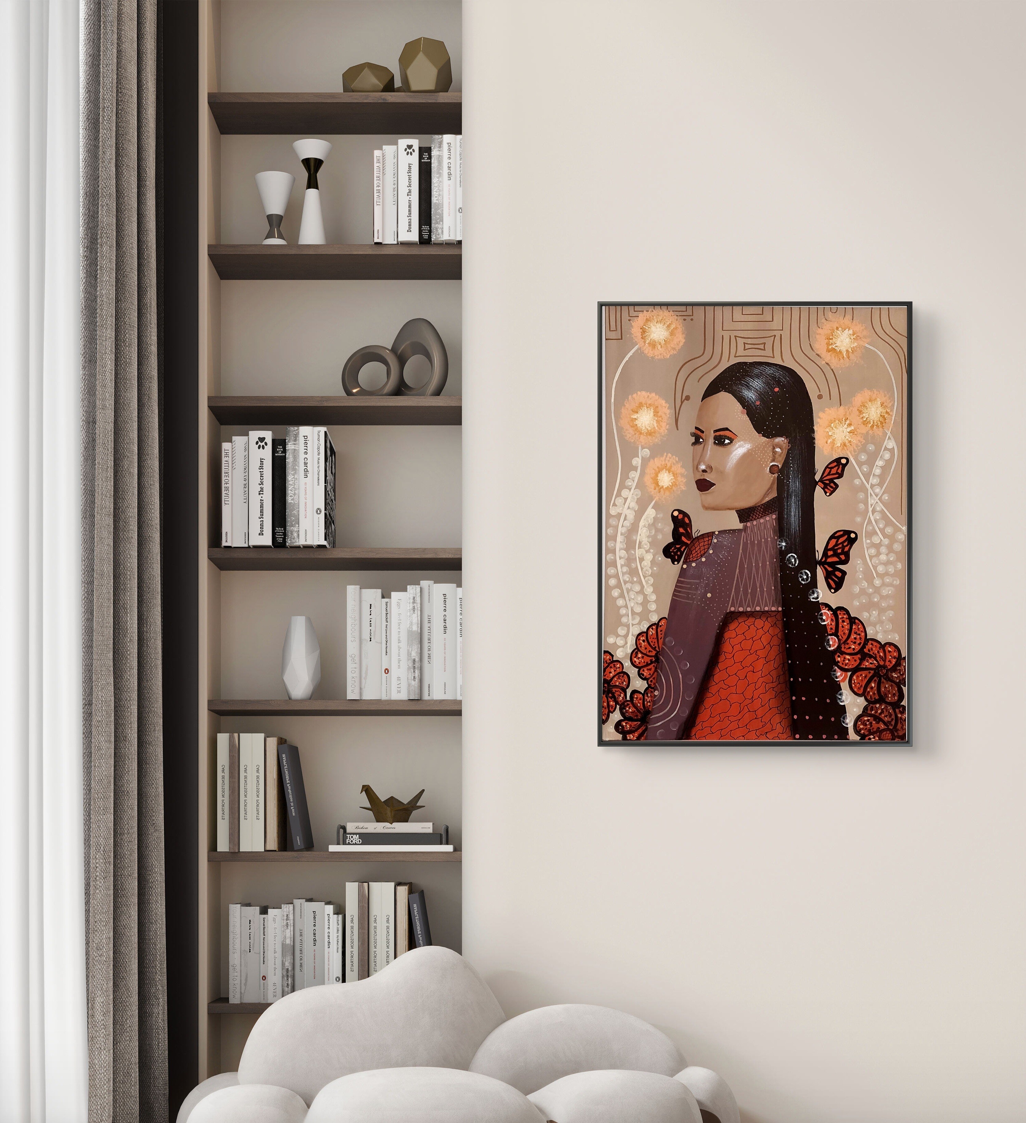 Wizualizacja obrazów w nowoczesnym wnętrzu w oprawie bądź bez.