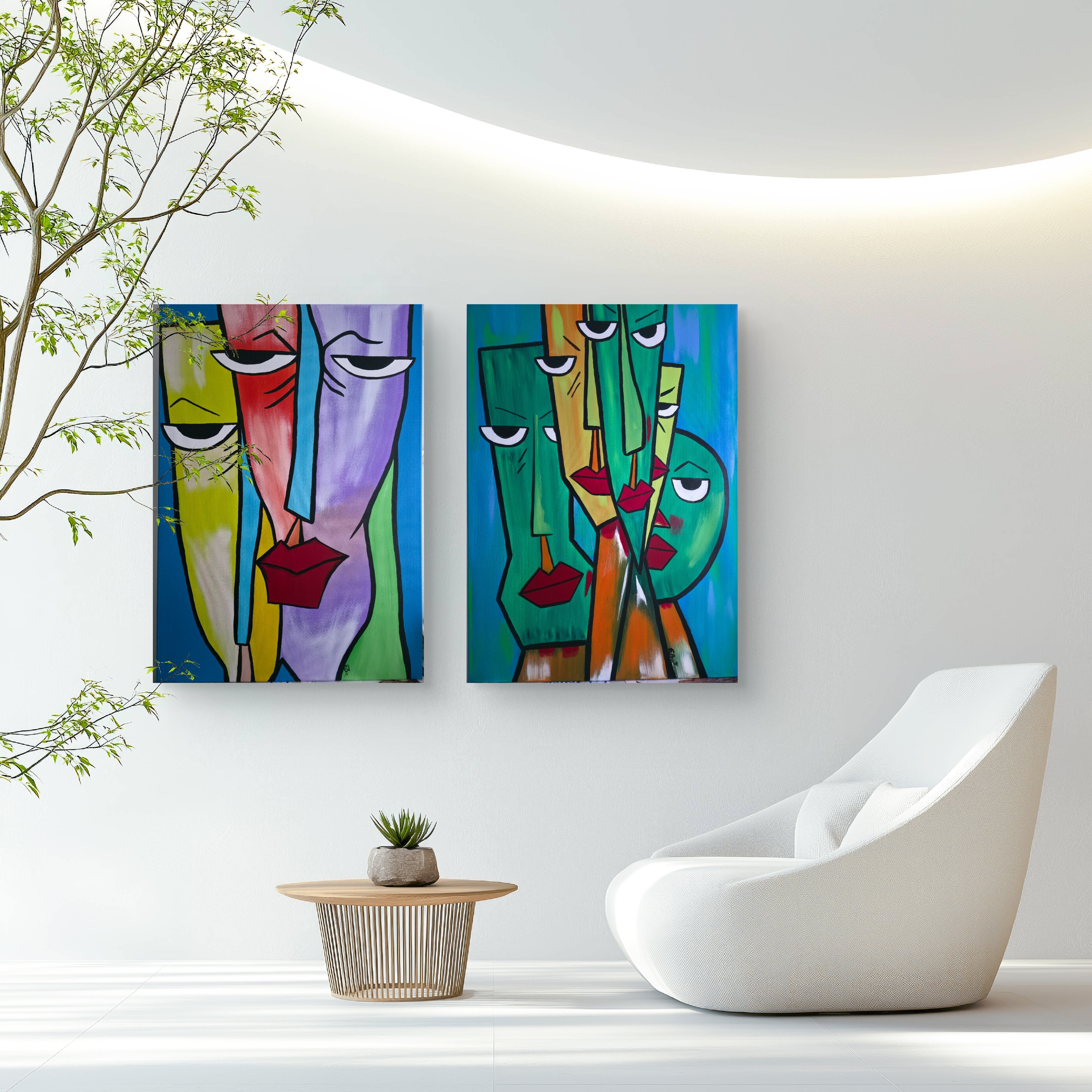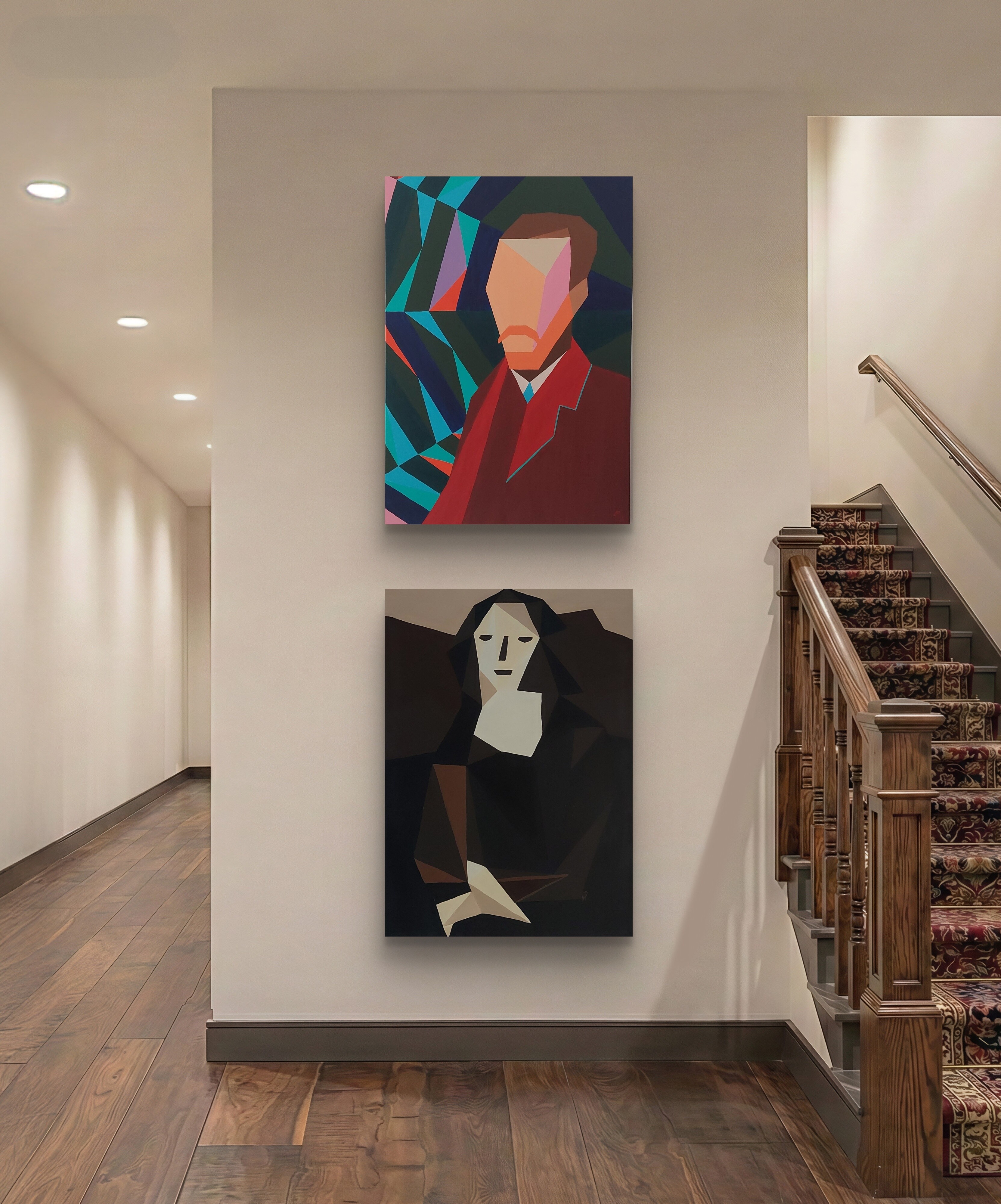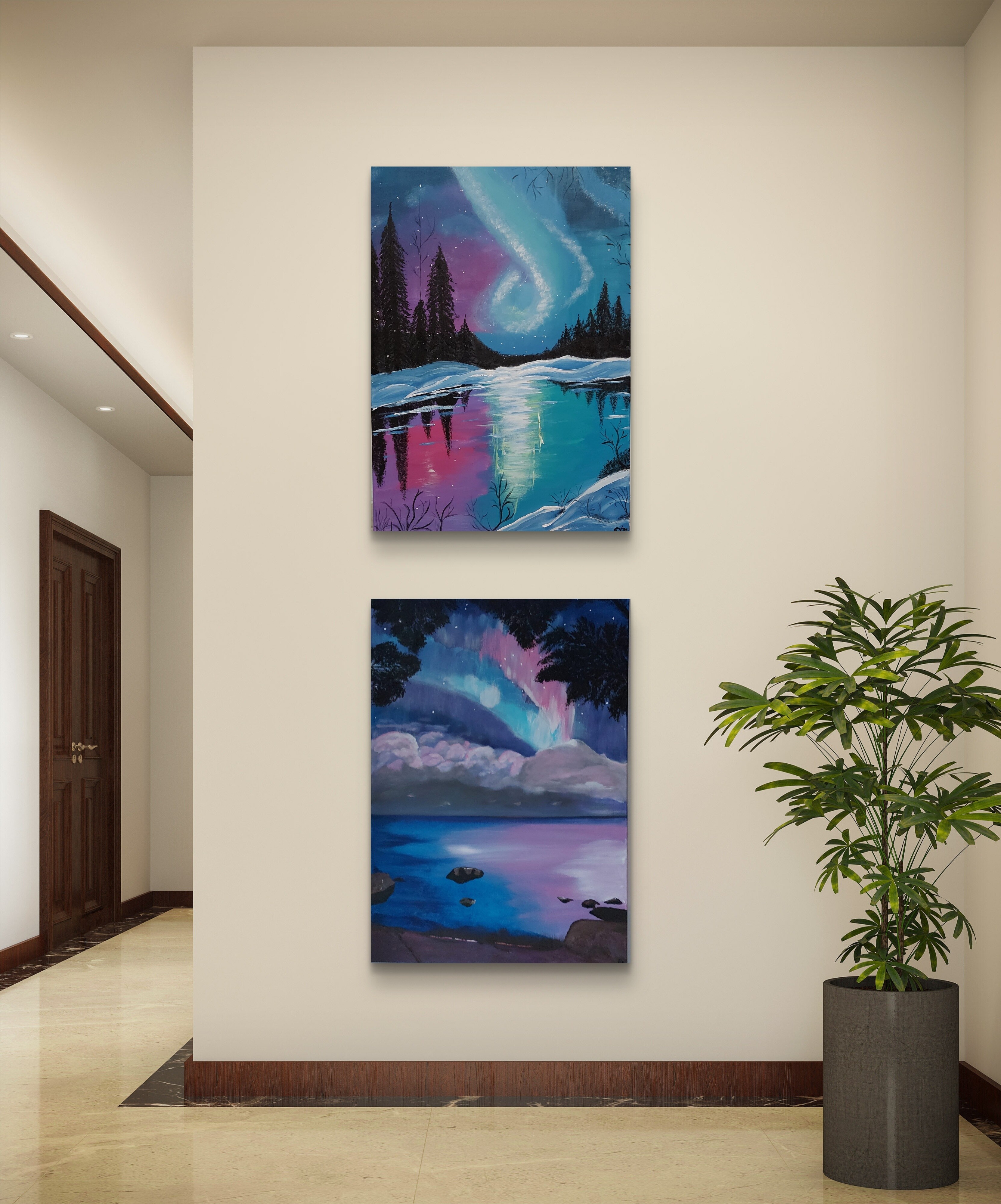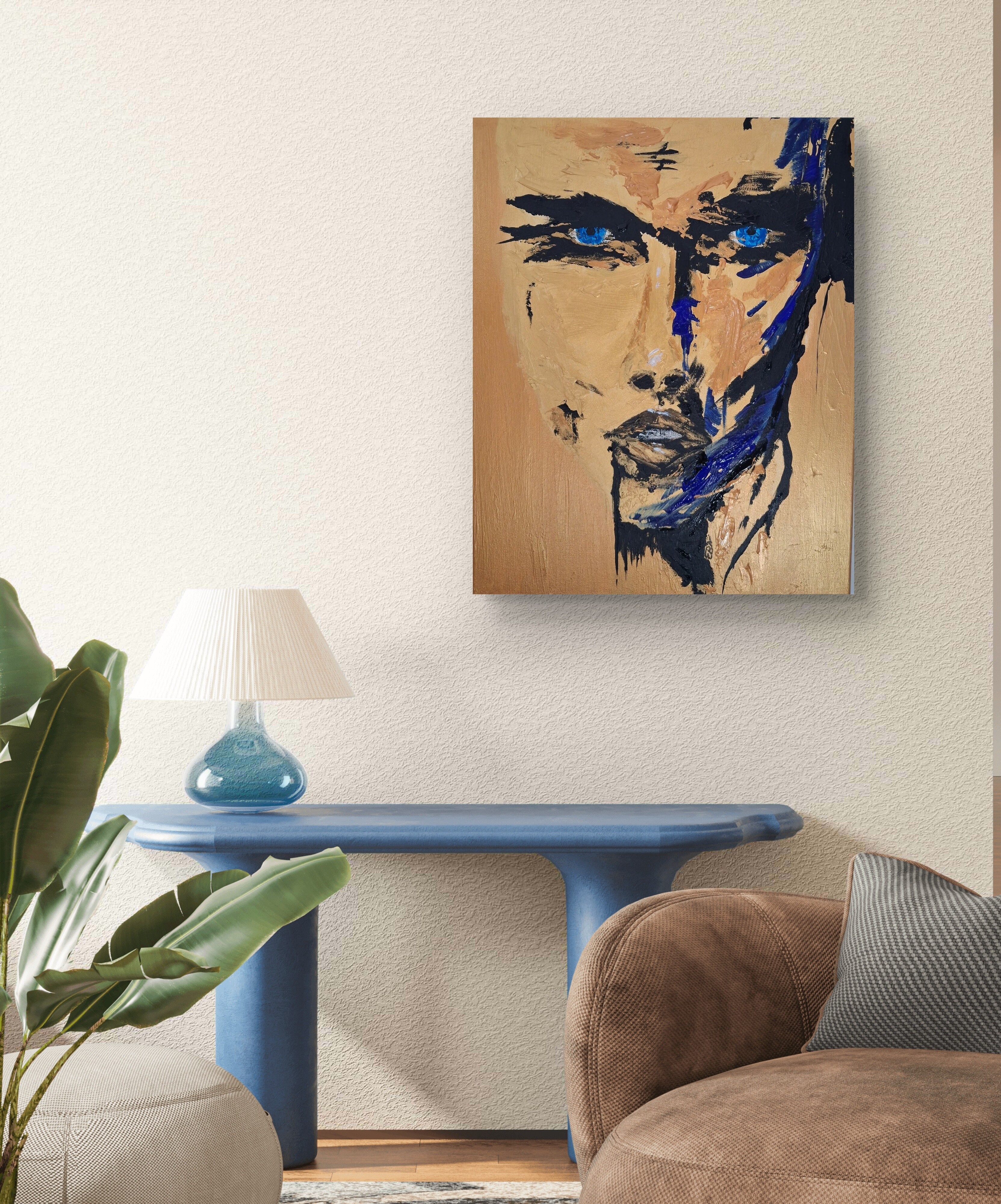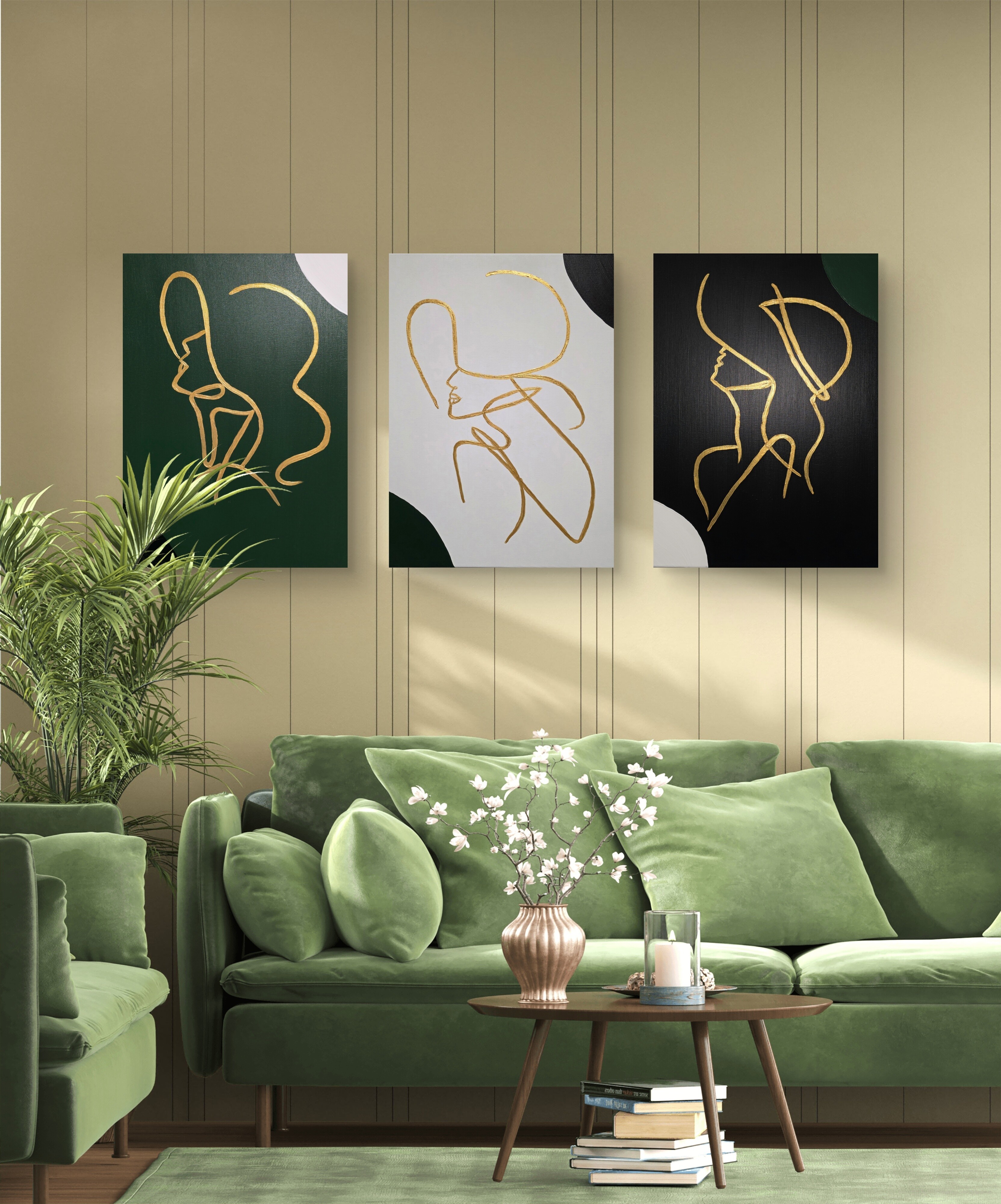 Wizualizacja obrazów w nowoczesnym wnętrzu w oprawie bądź bez.