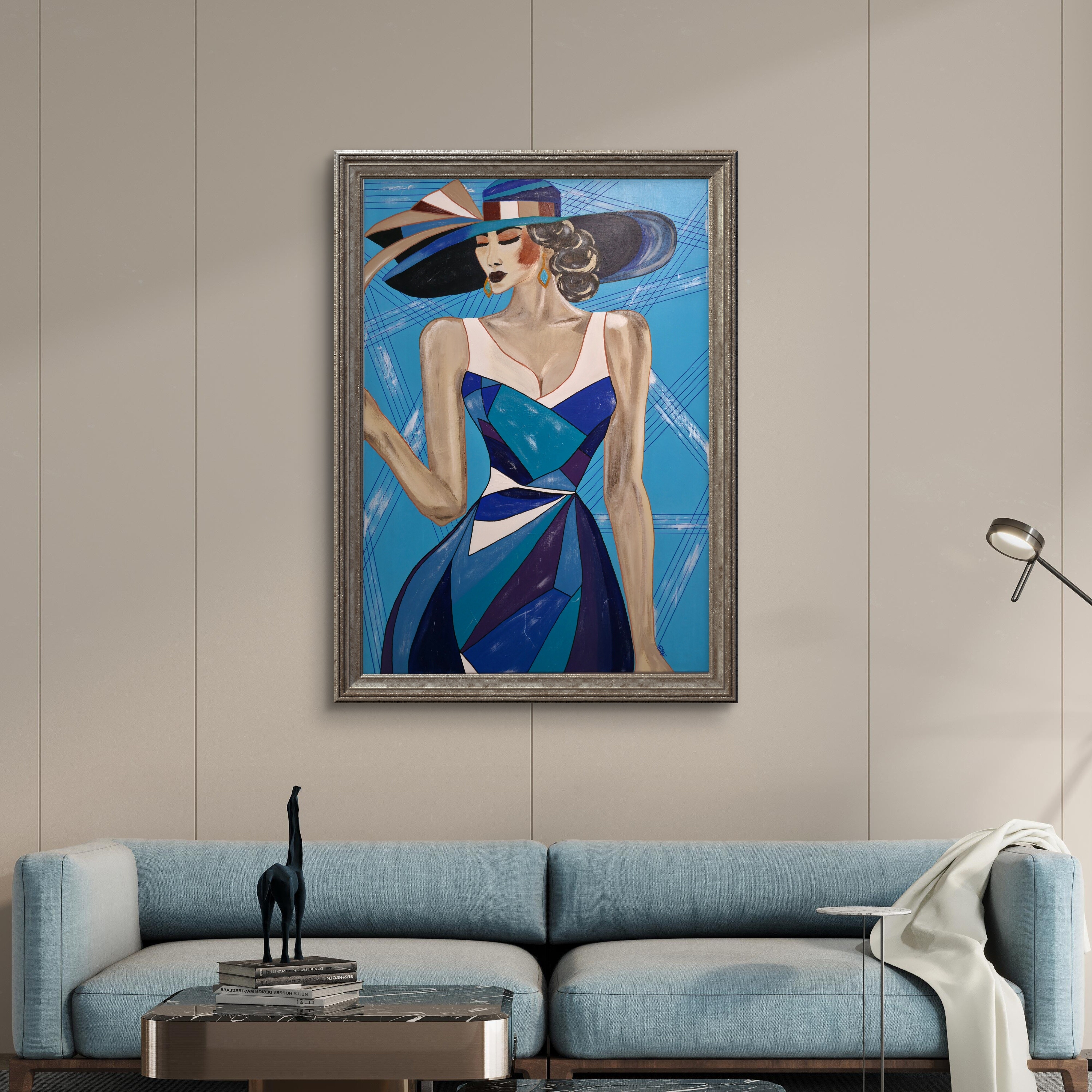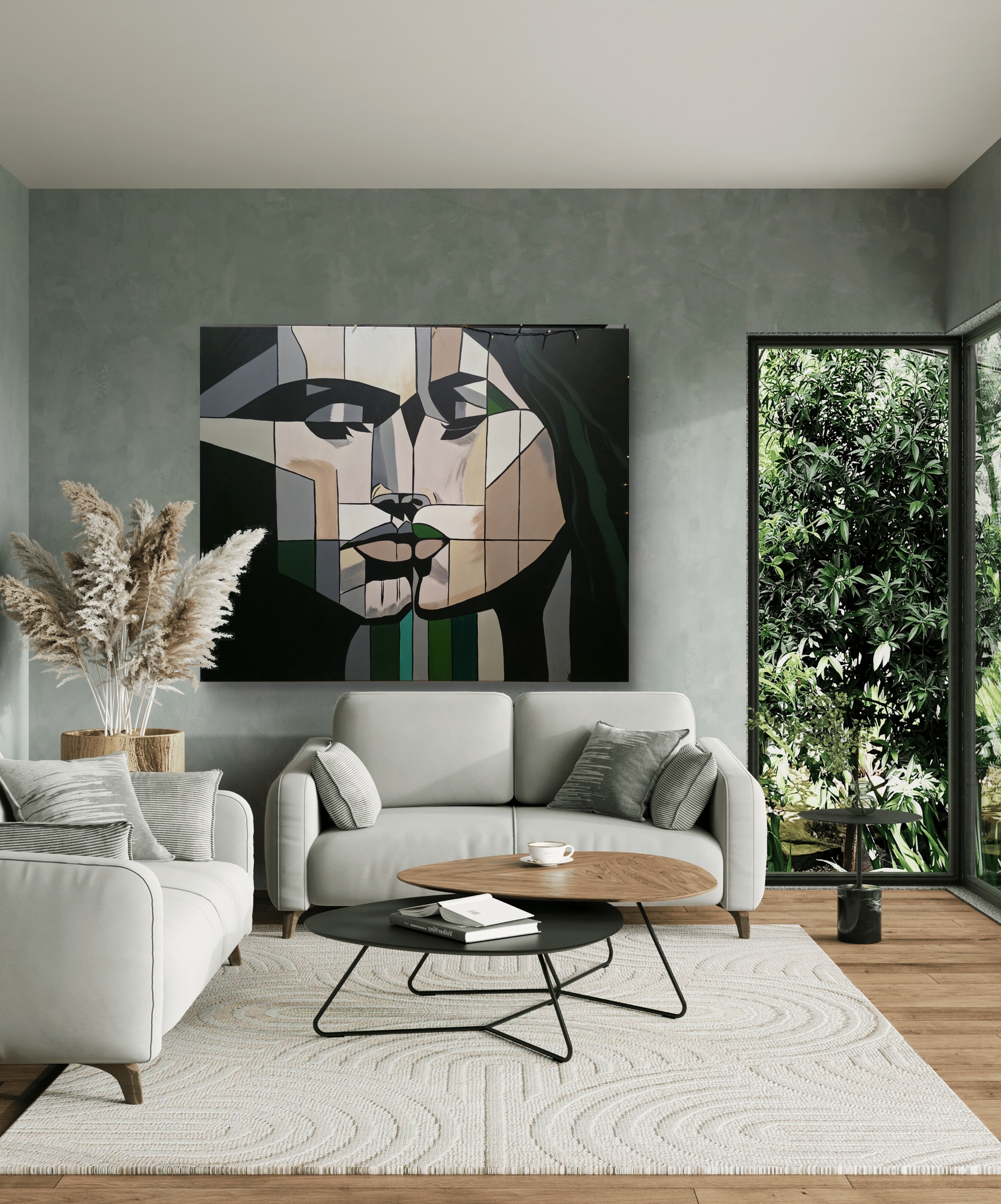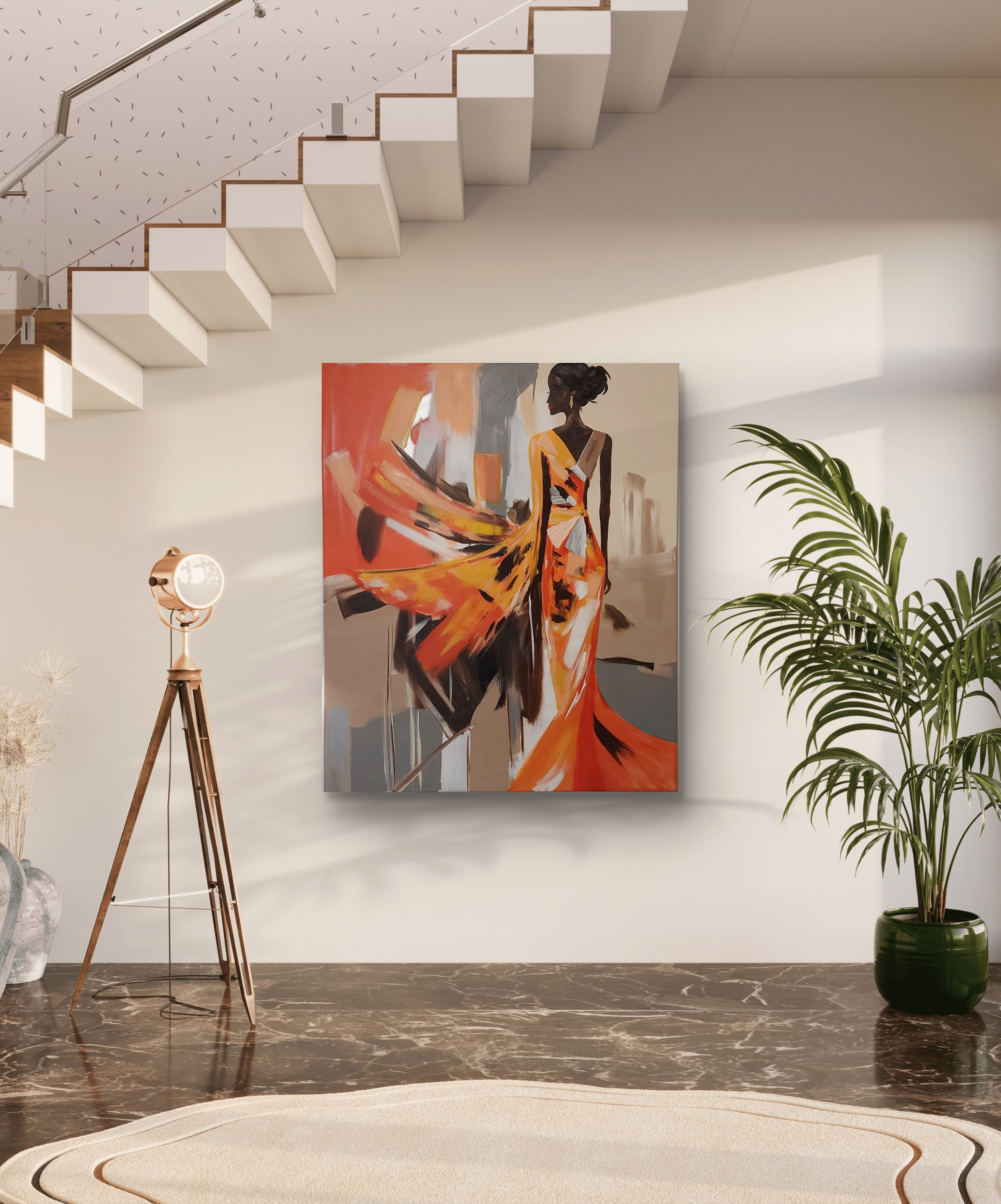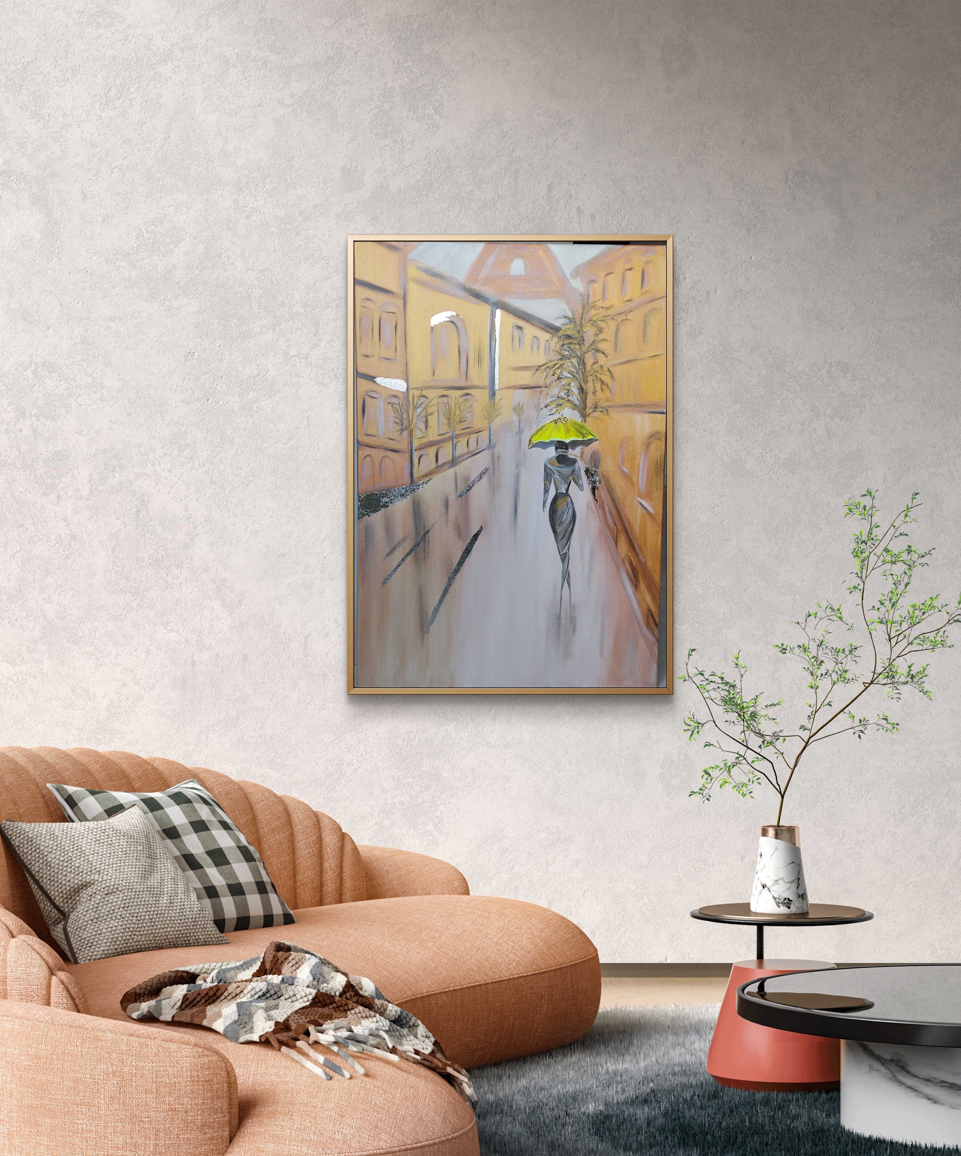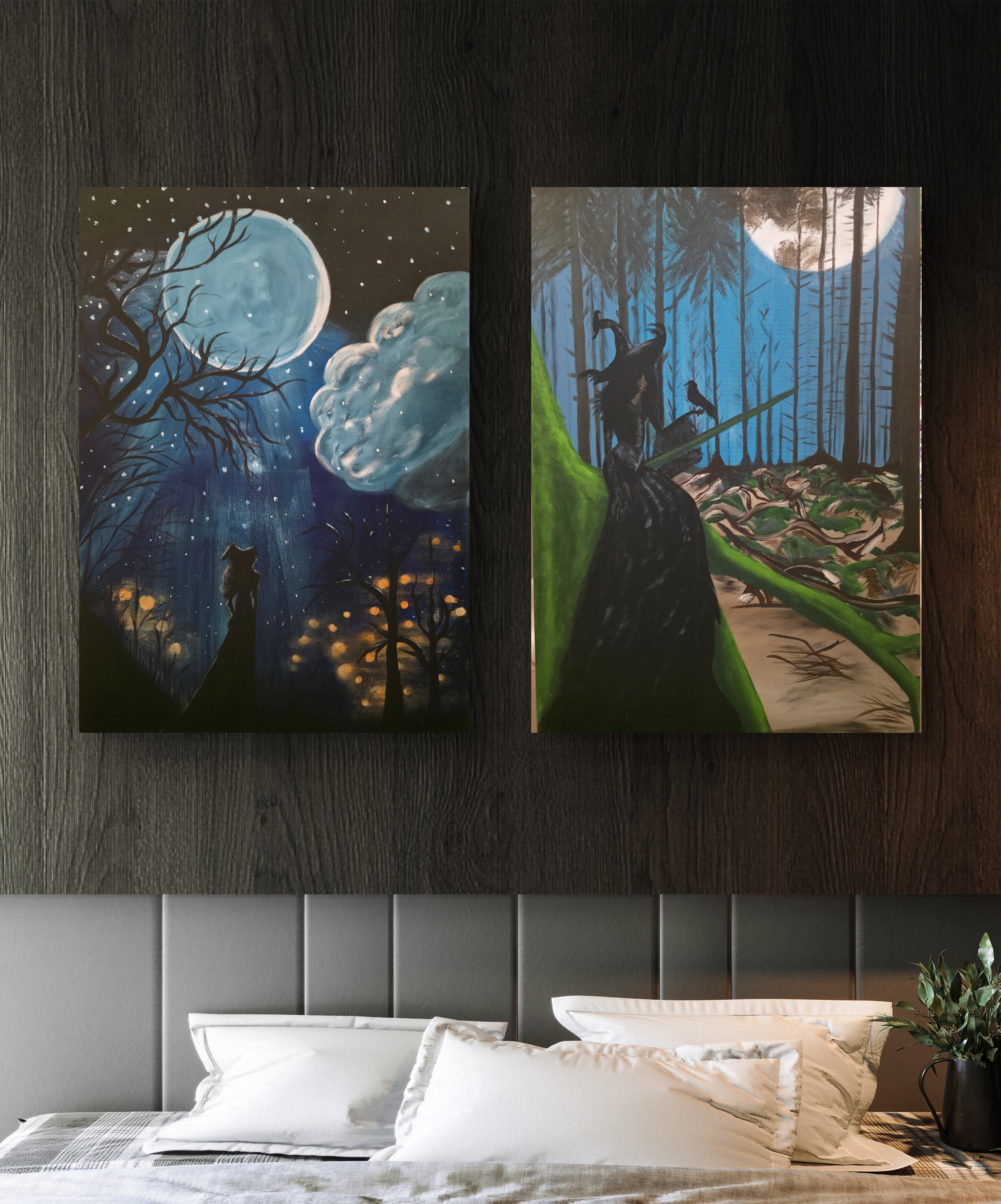Wizualizacja obrazów w nowoczesnym wnętrzu w oprawie bądź bez.