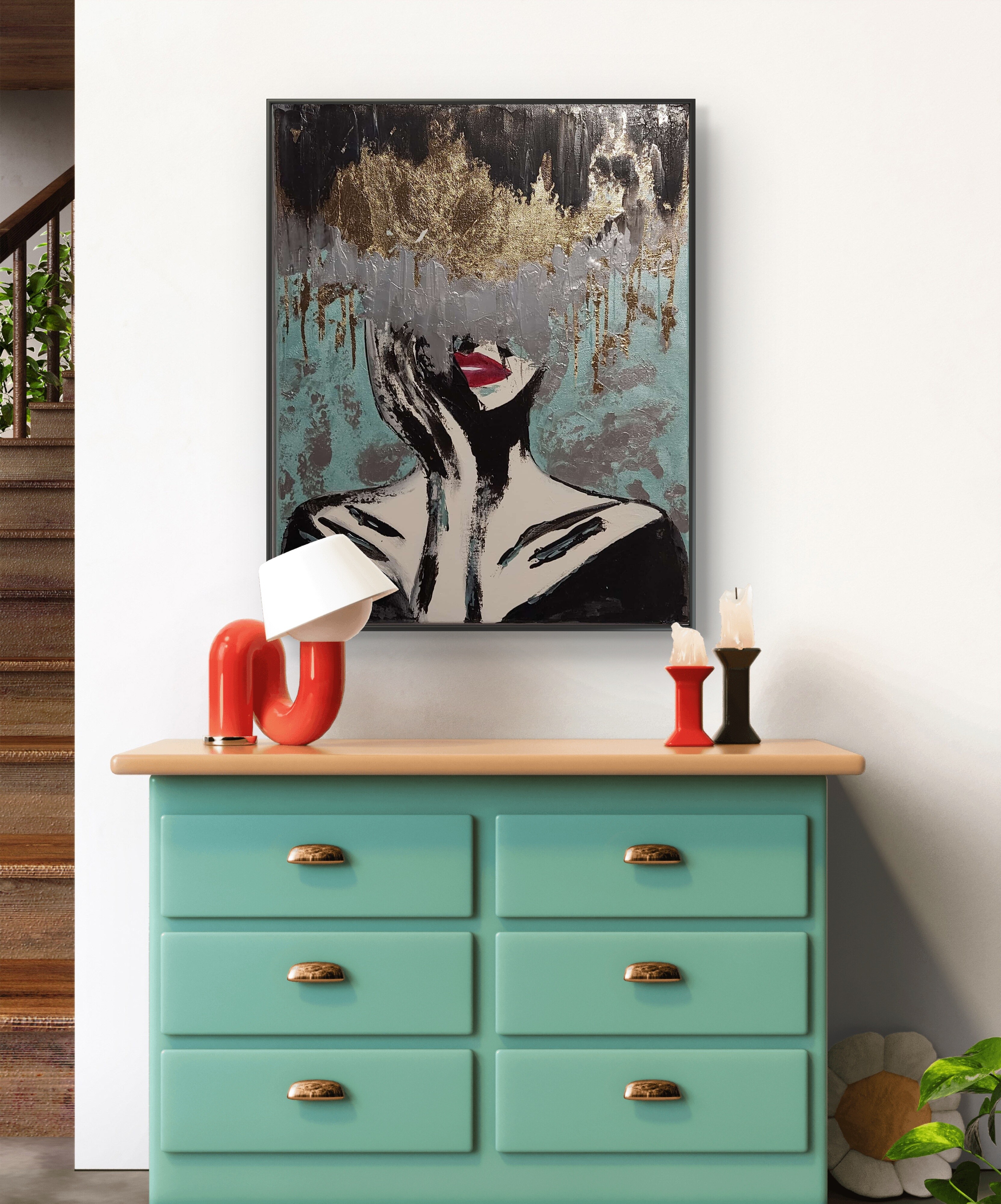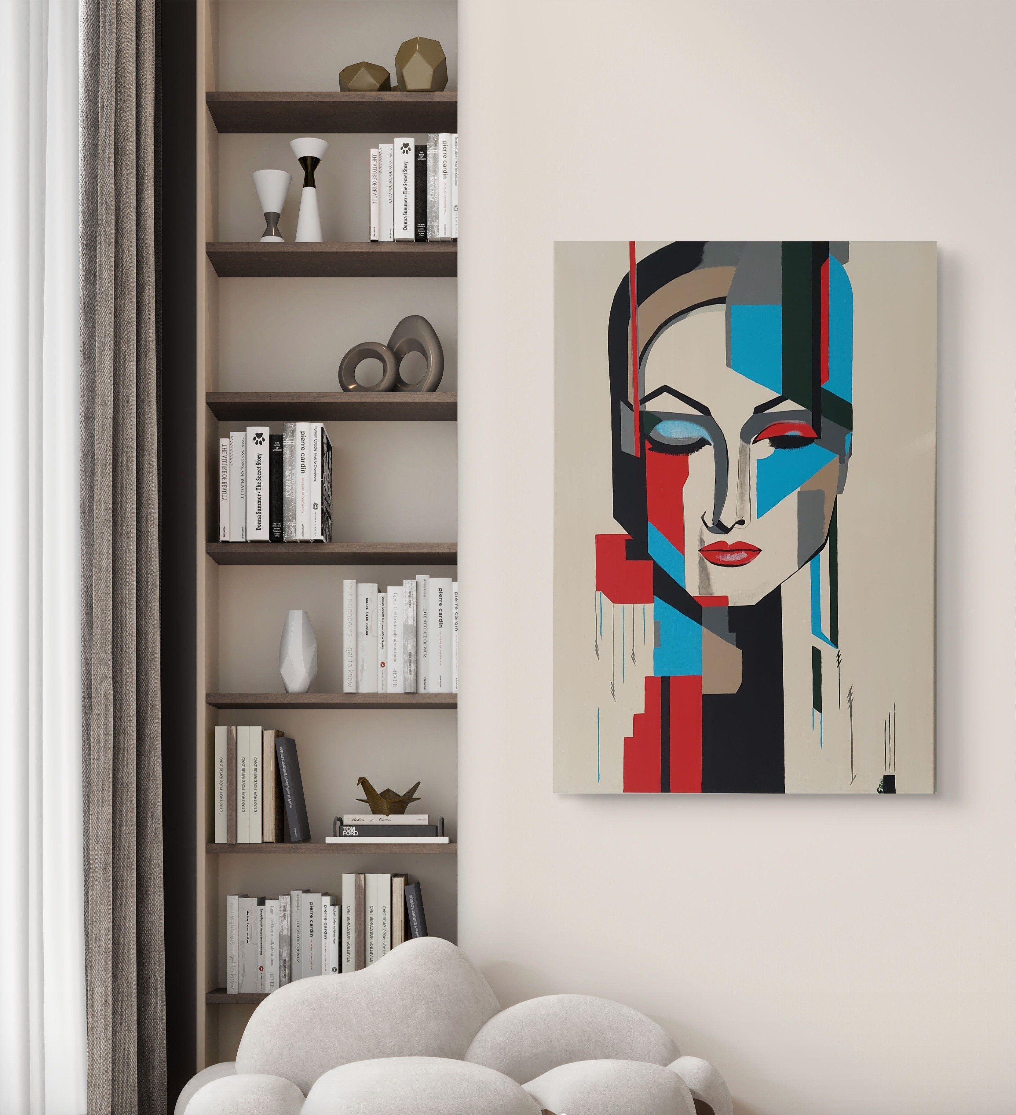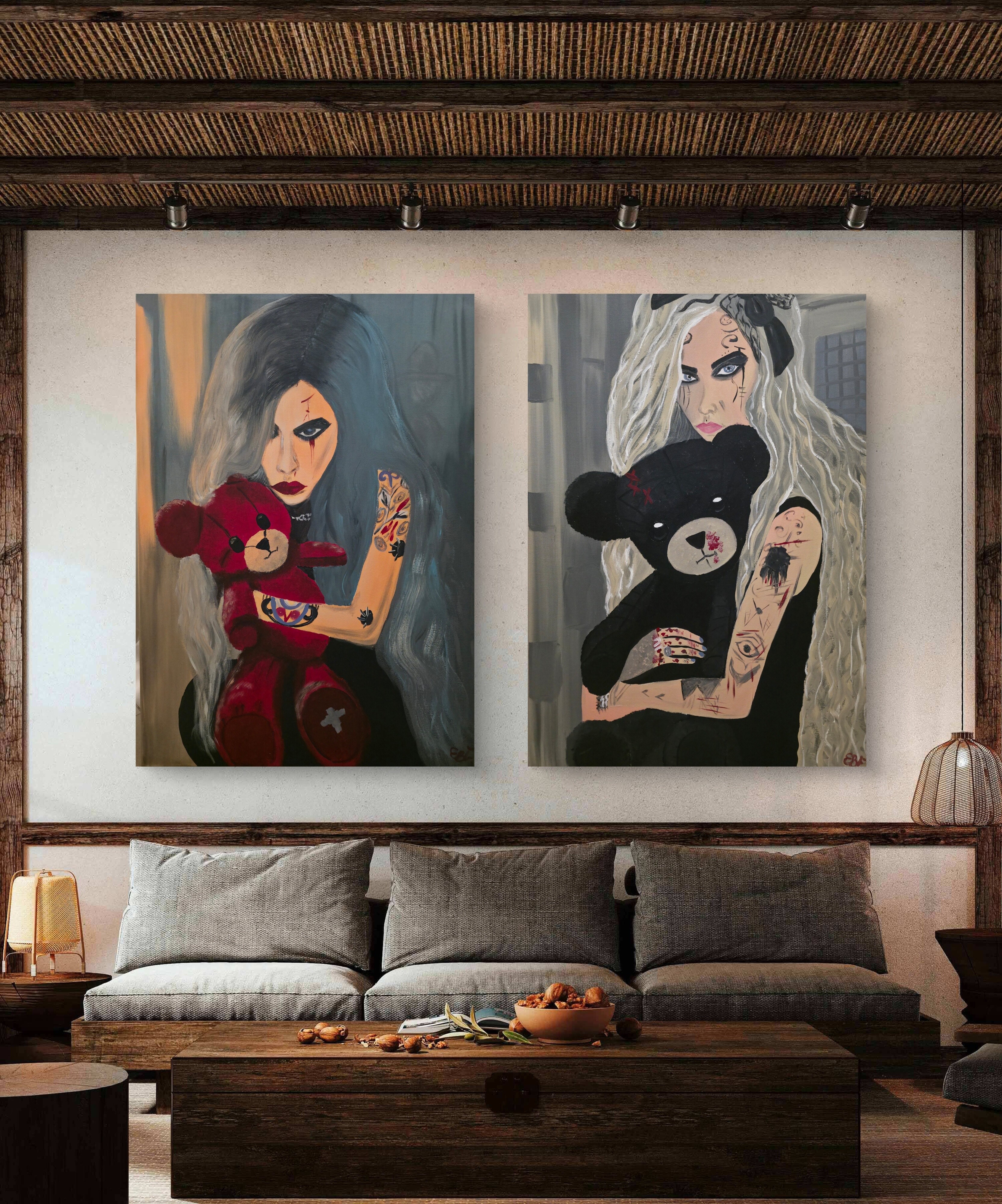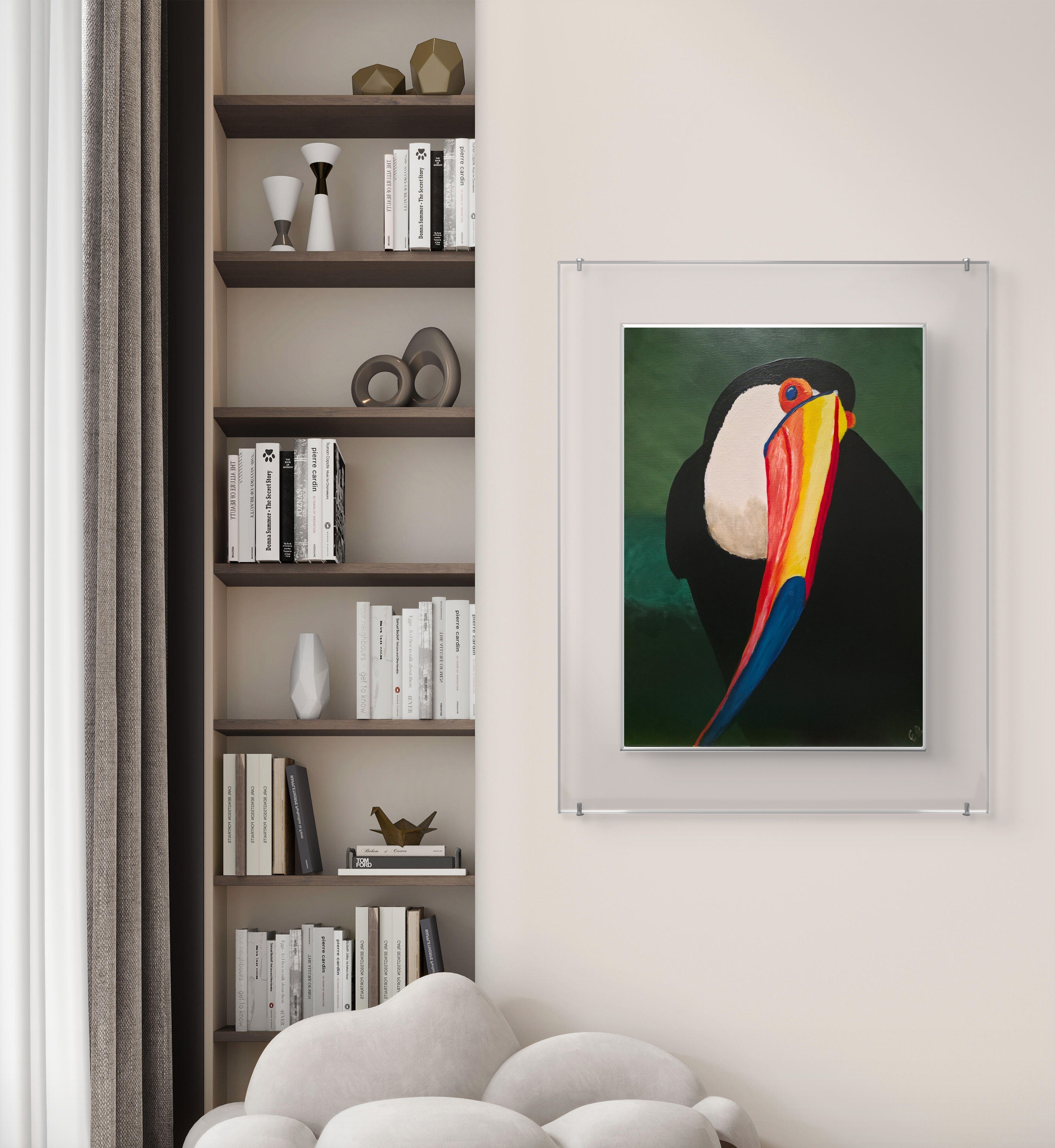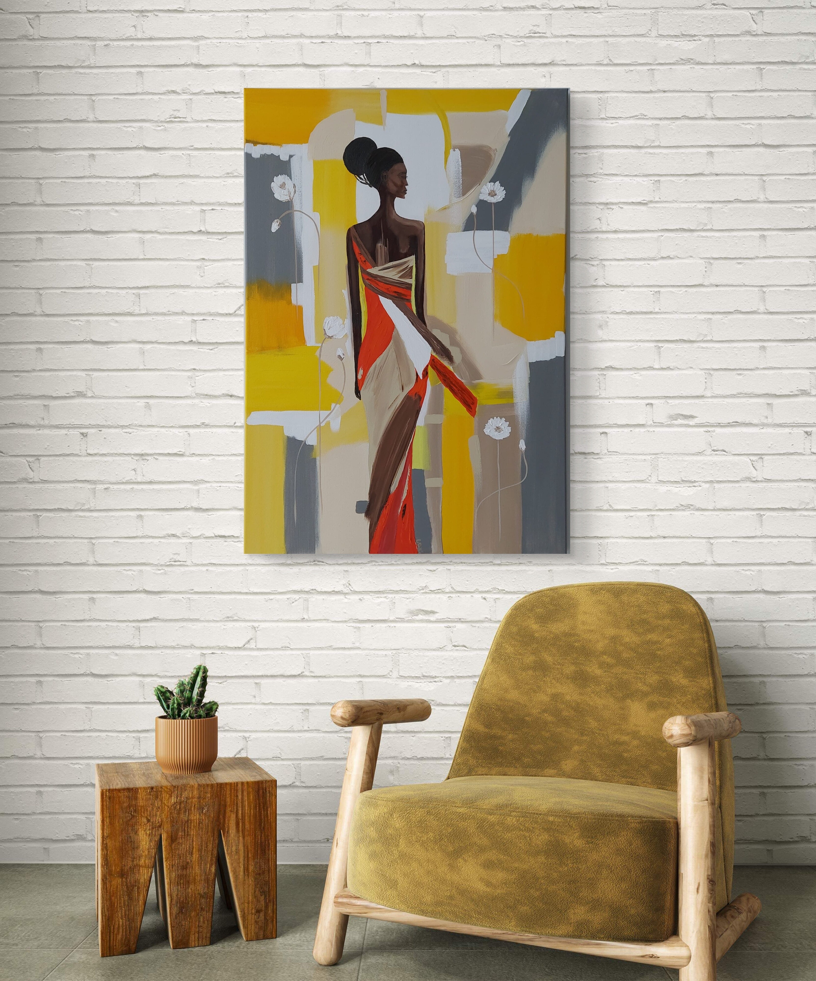 Wizualizacja obrazów w nowoczesnym wnętrzu w oprawie bądź bez.