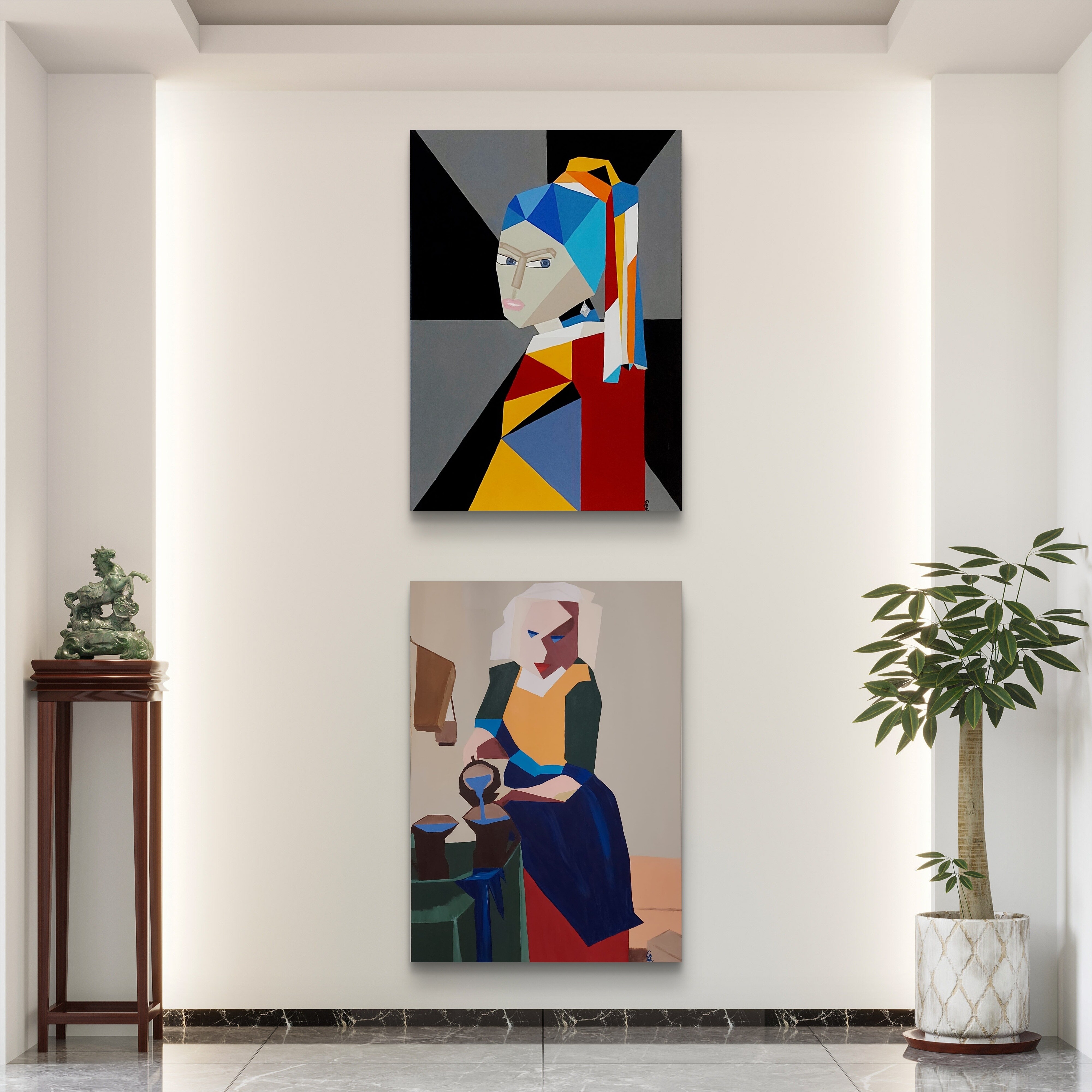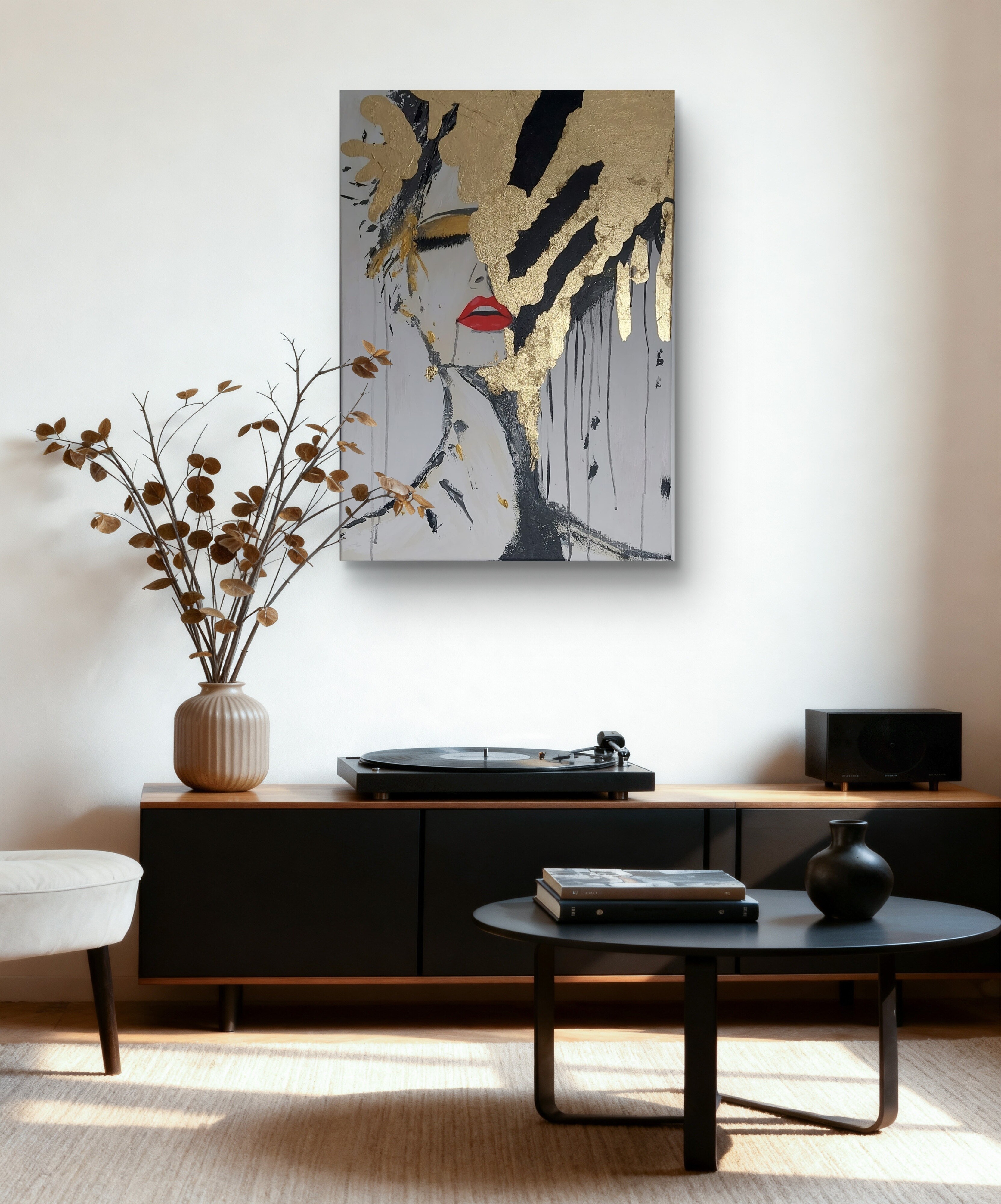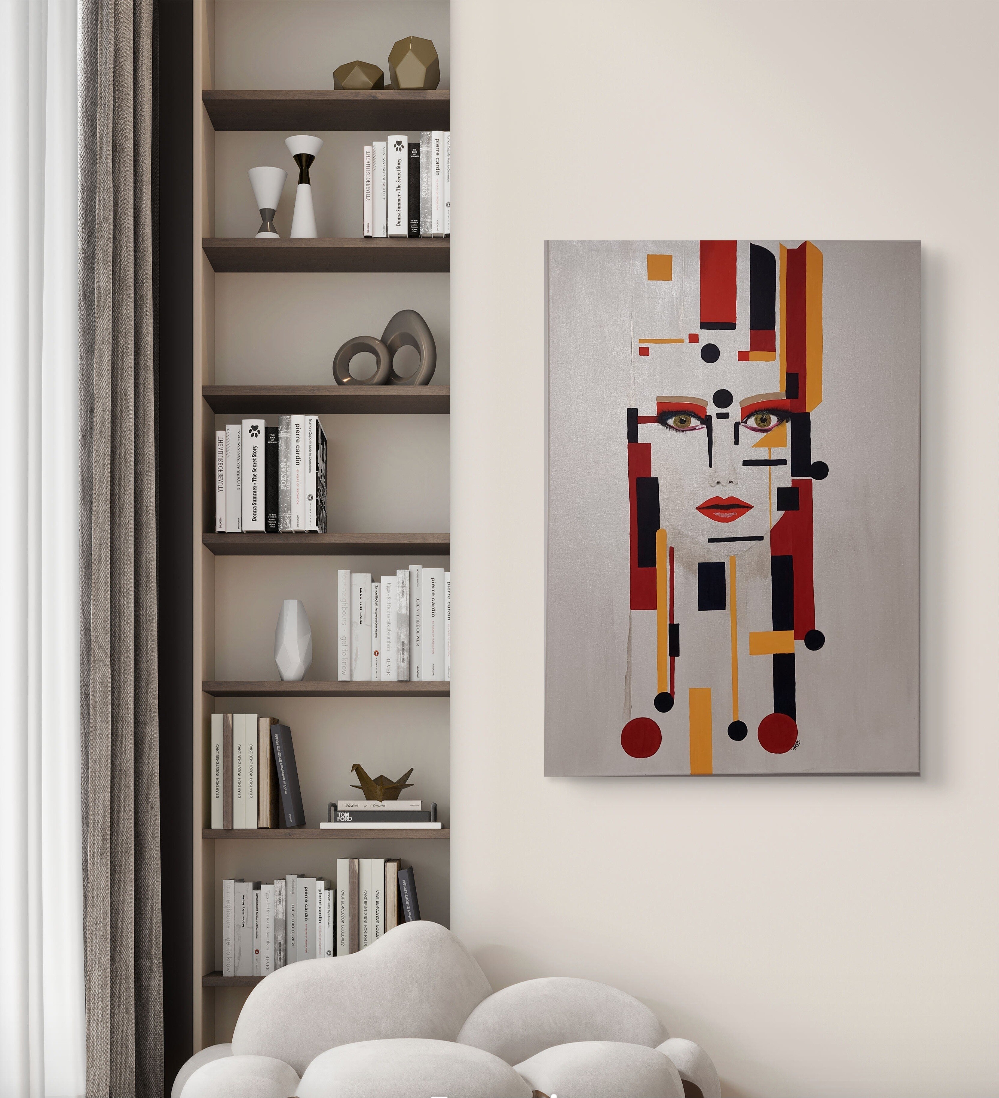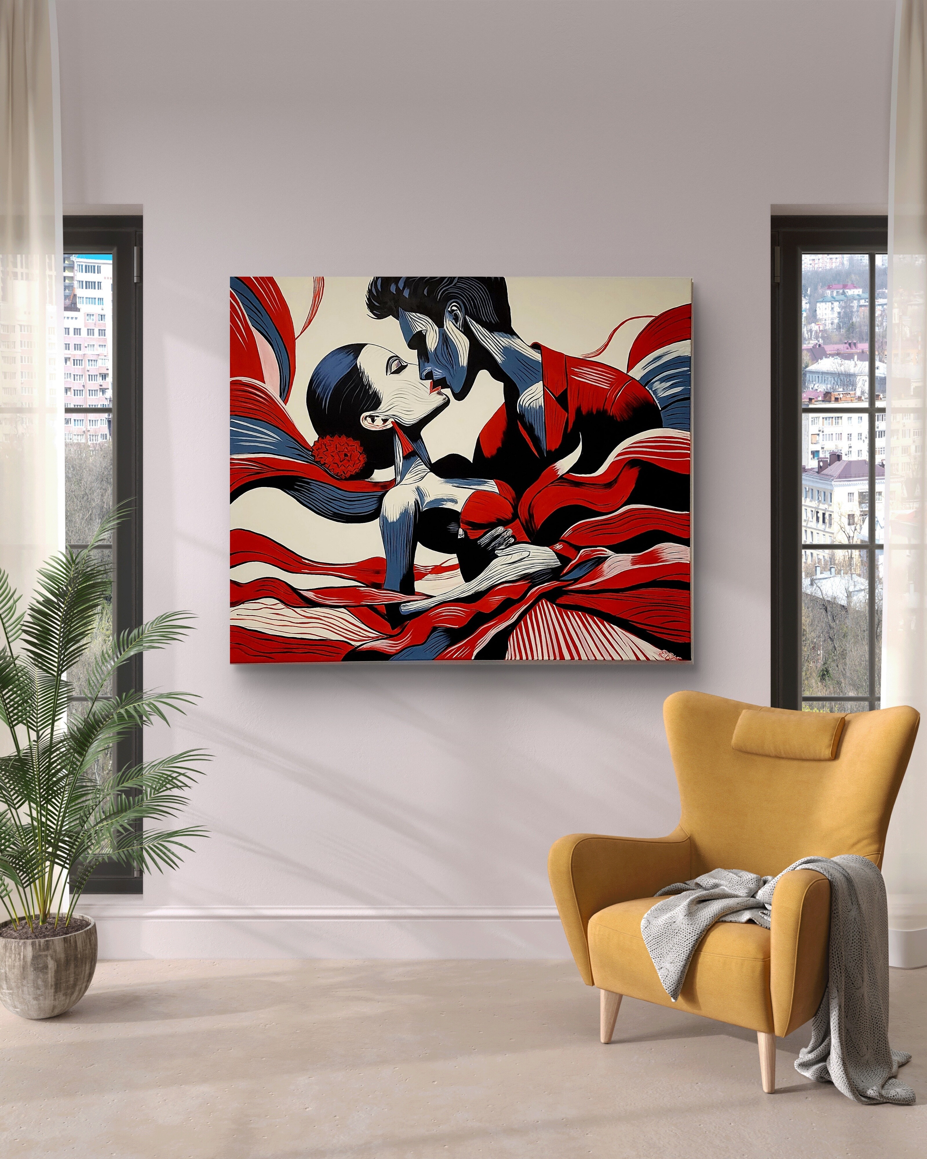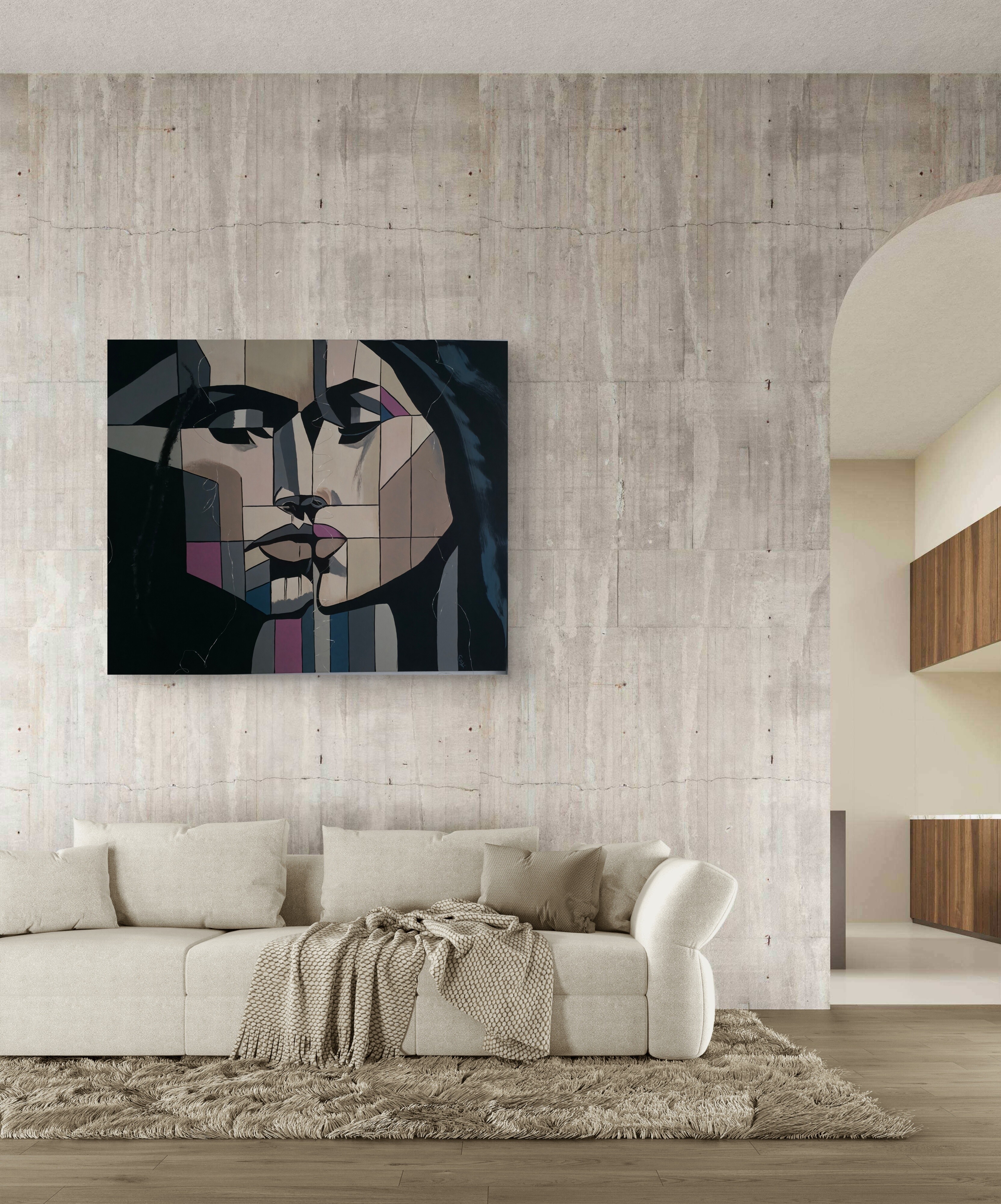 Wizualizacja obrazów w nowoczesnym wnętrzu w oprawie bądź bez.