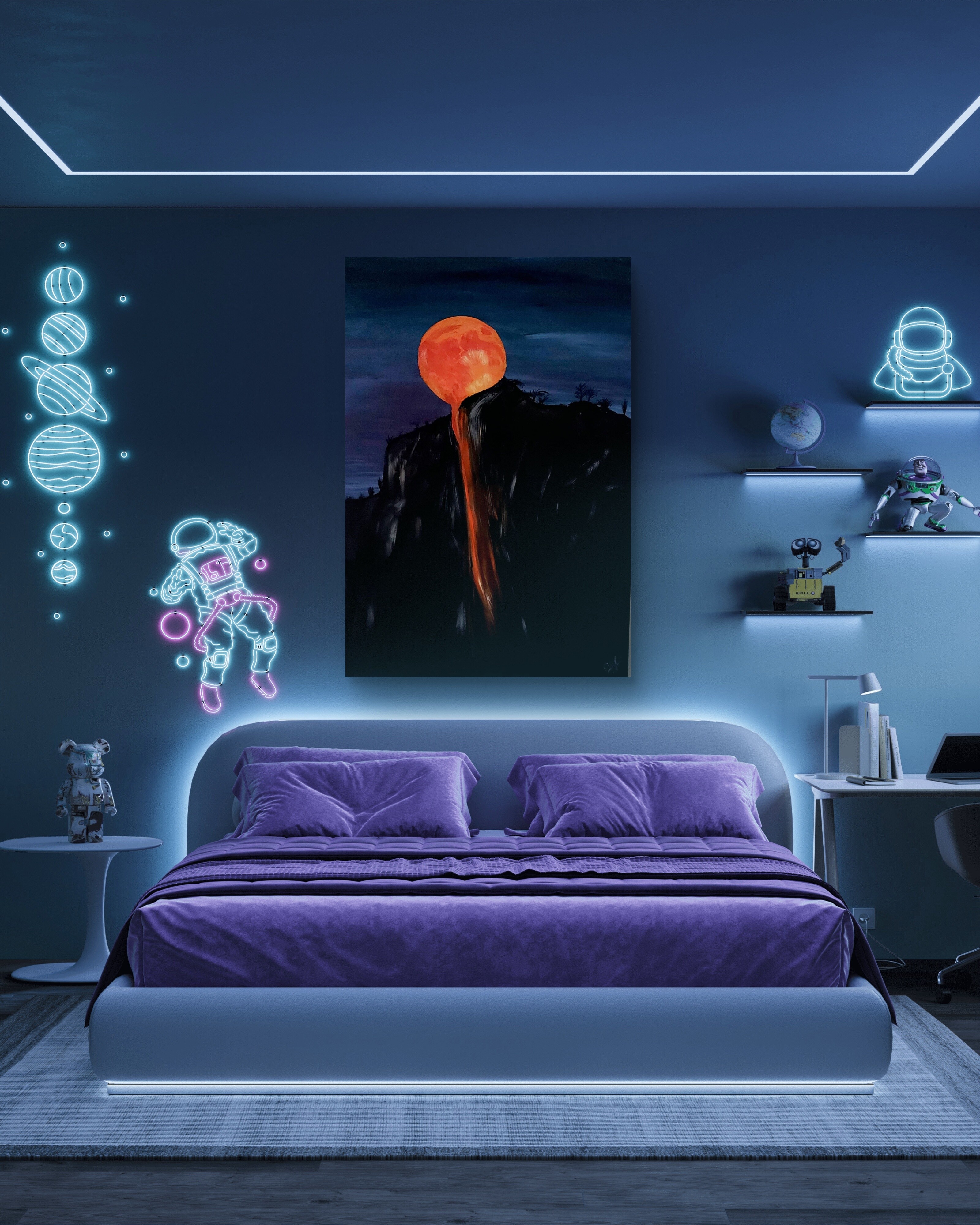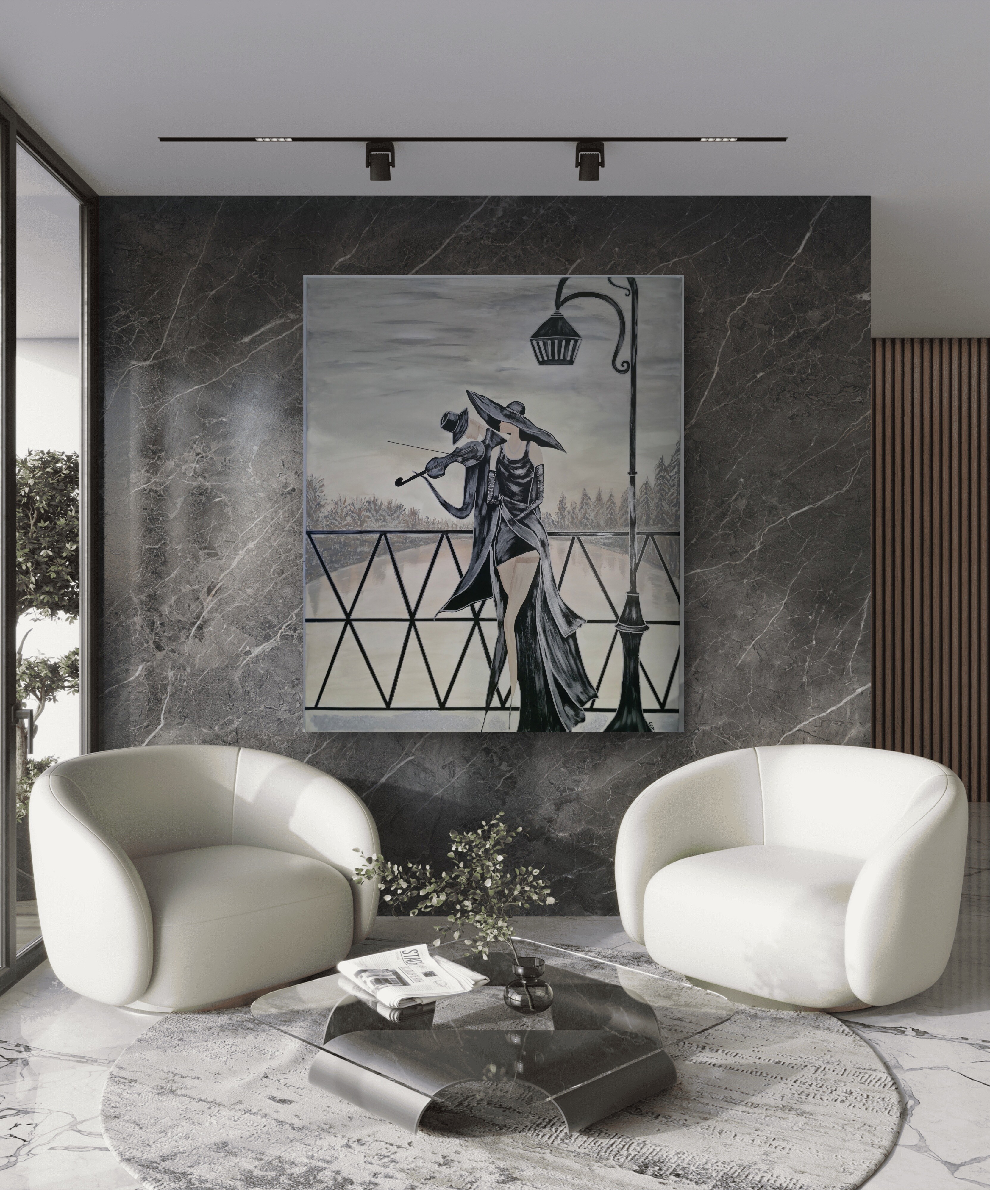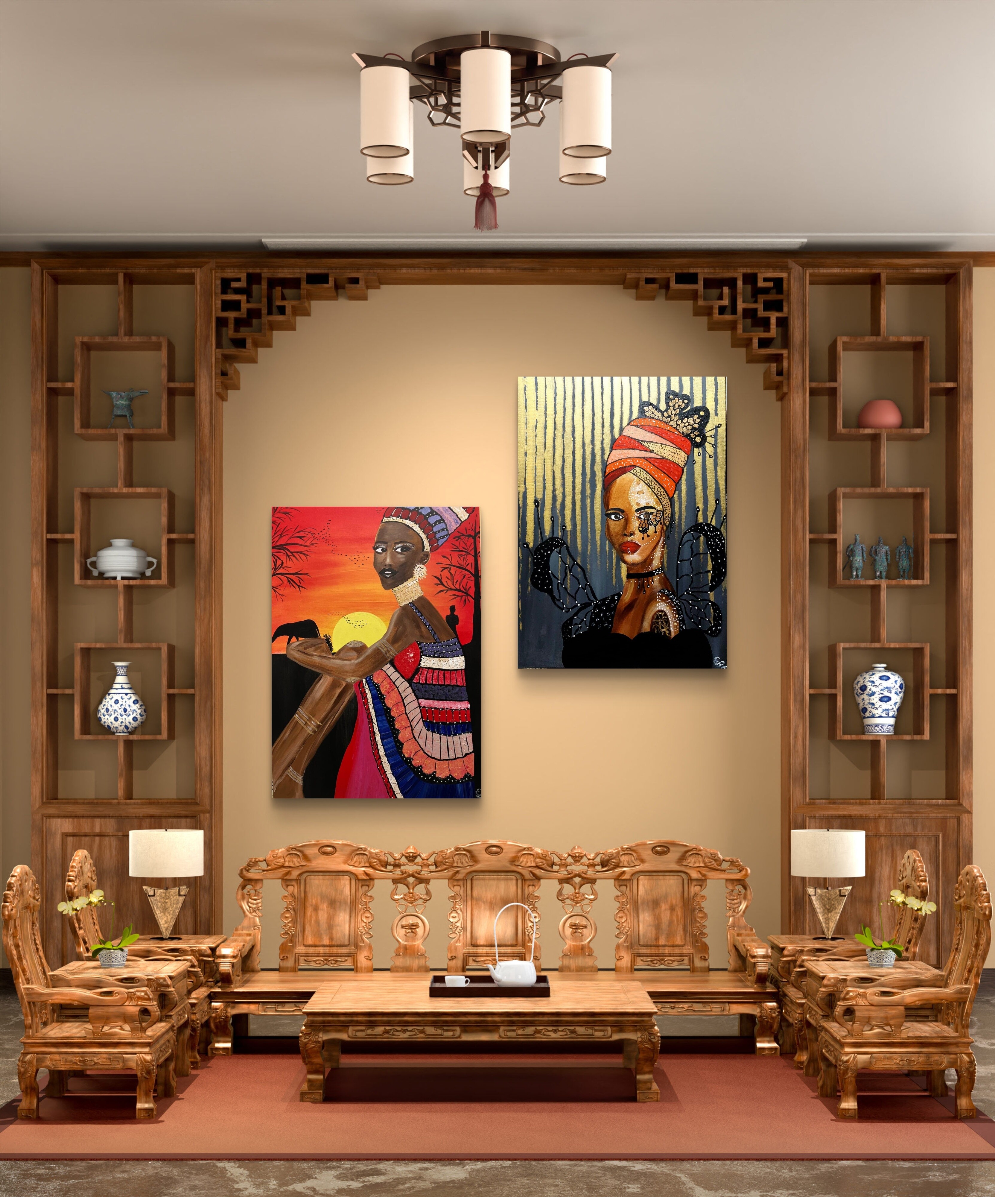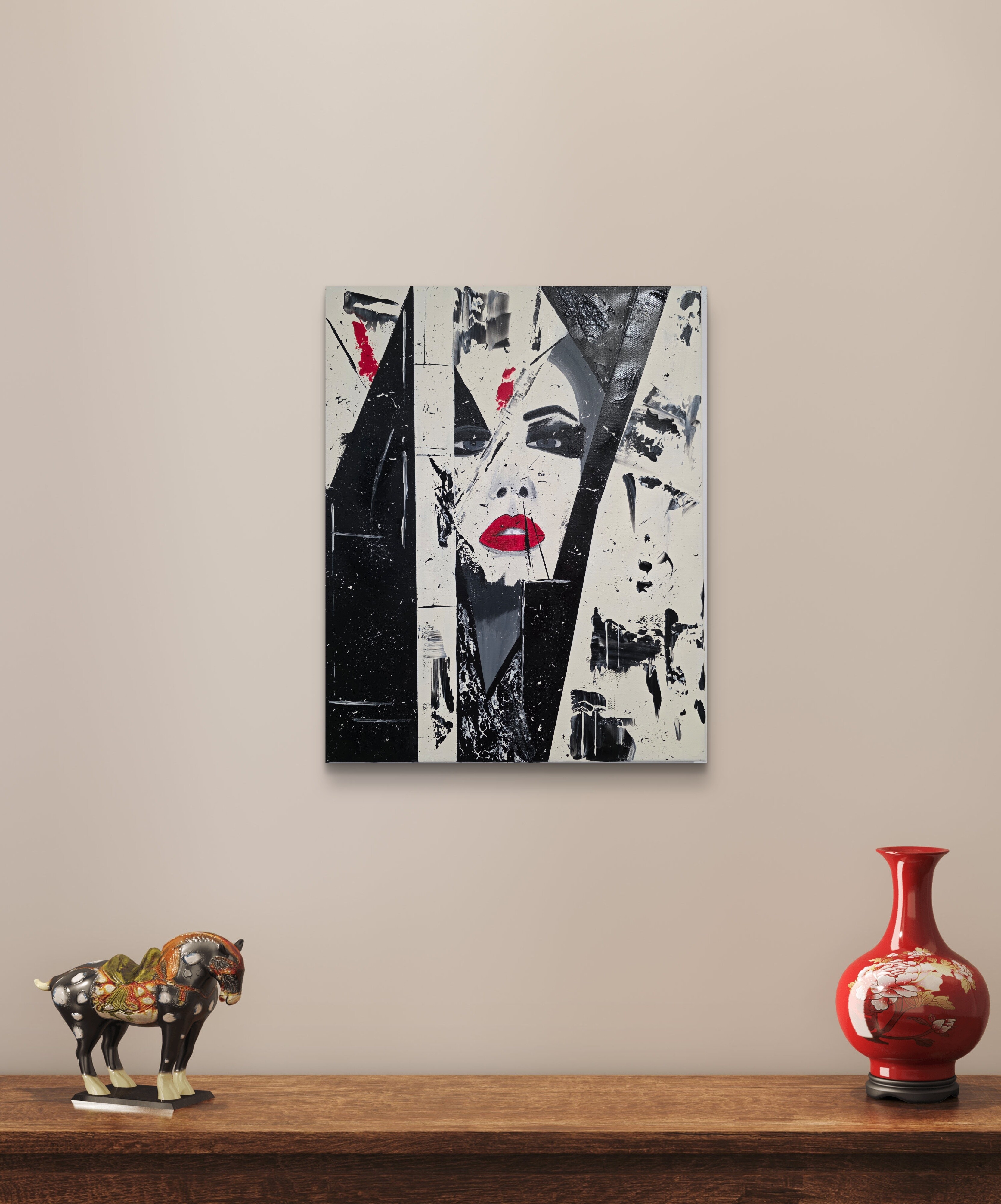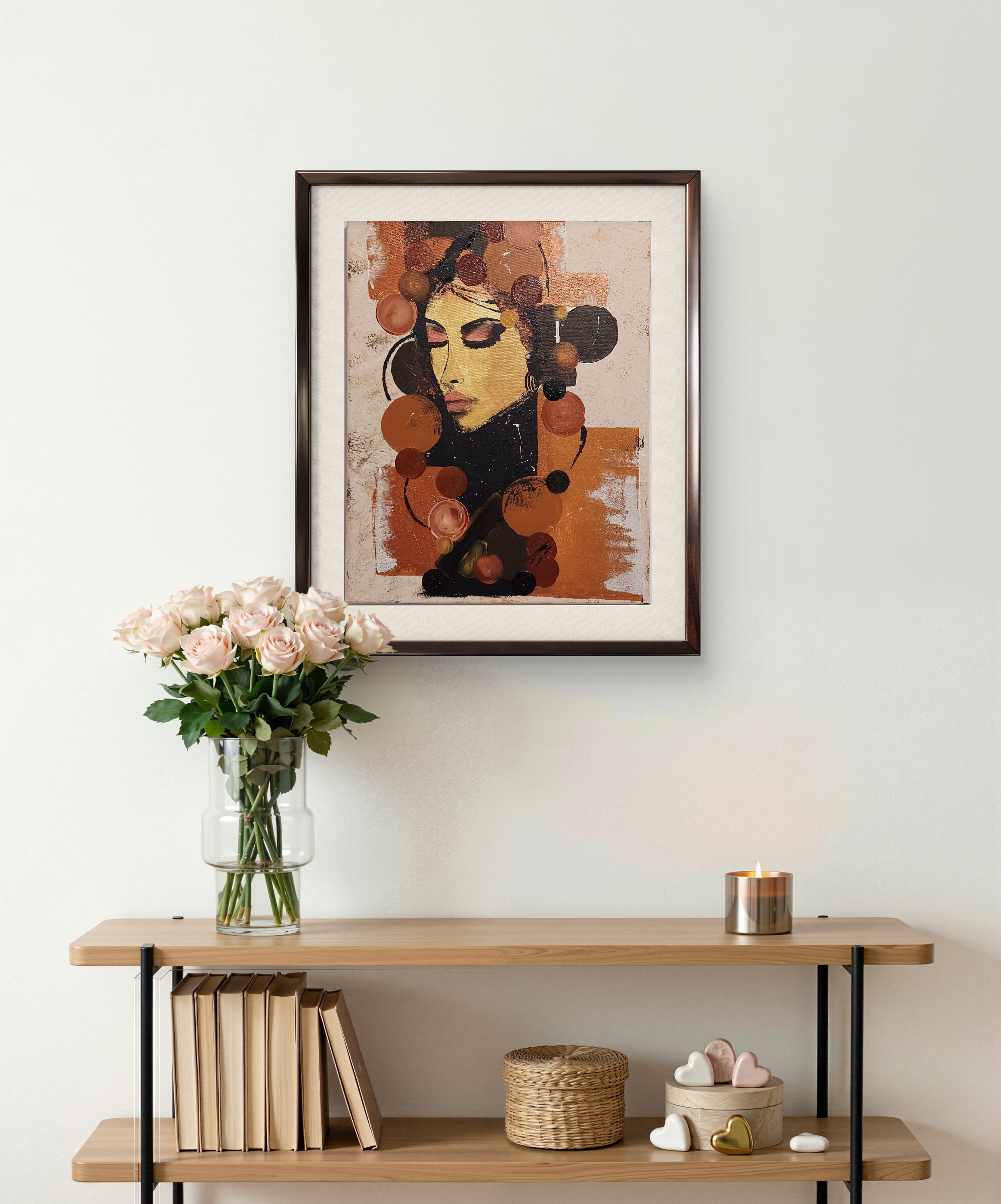 Wizualizacja obrazów w nowoczesnym wnętrzu w oprawie bądź bez.