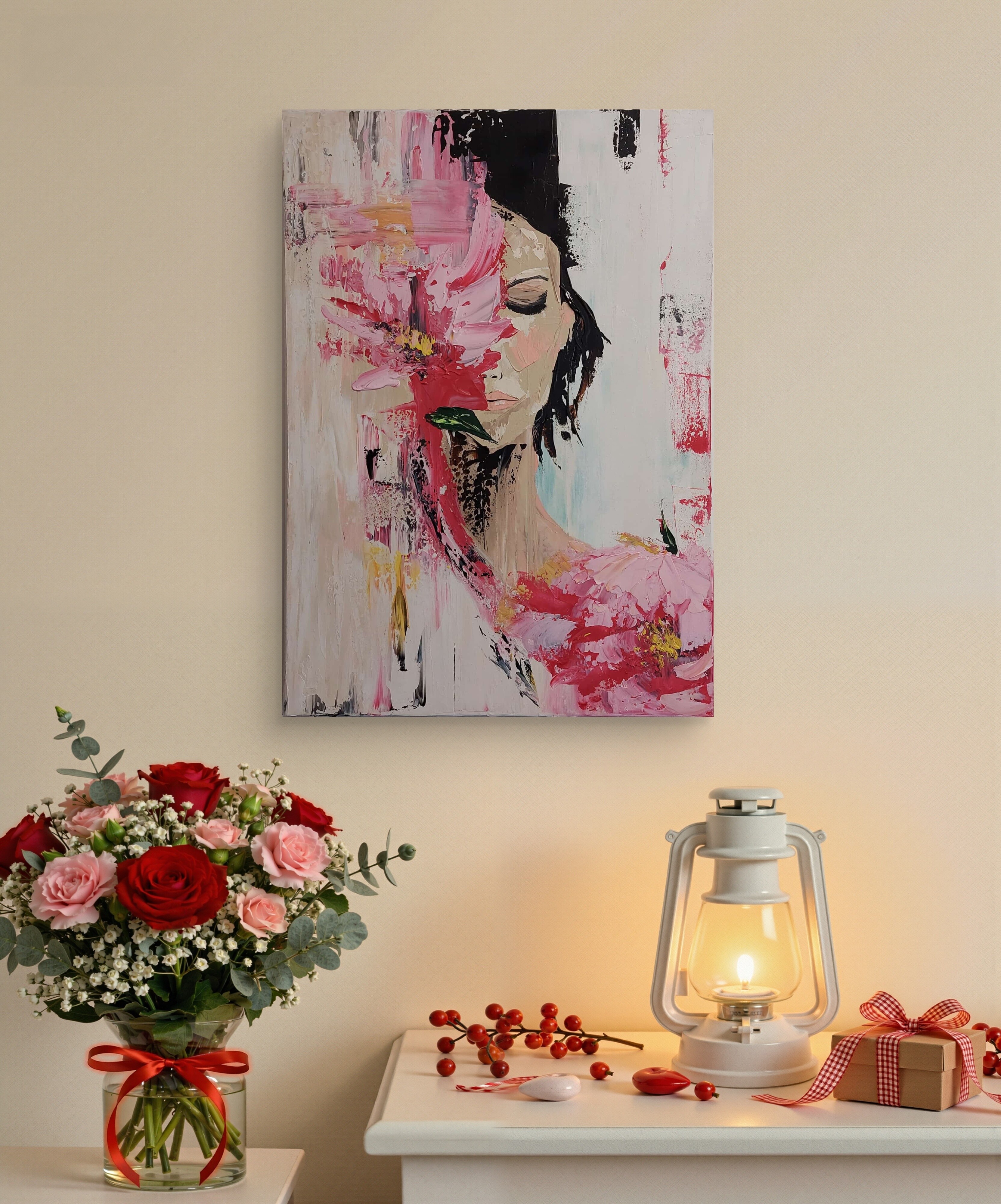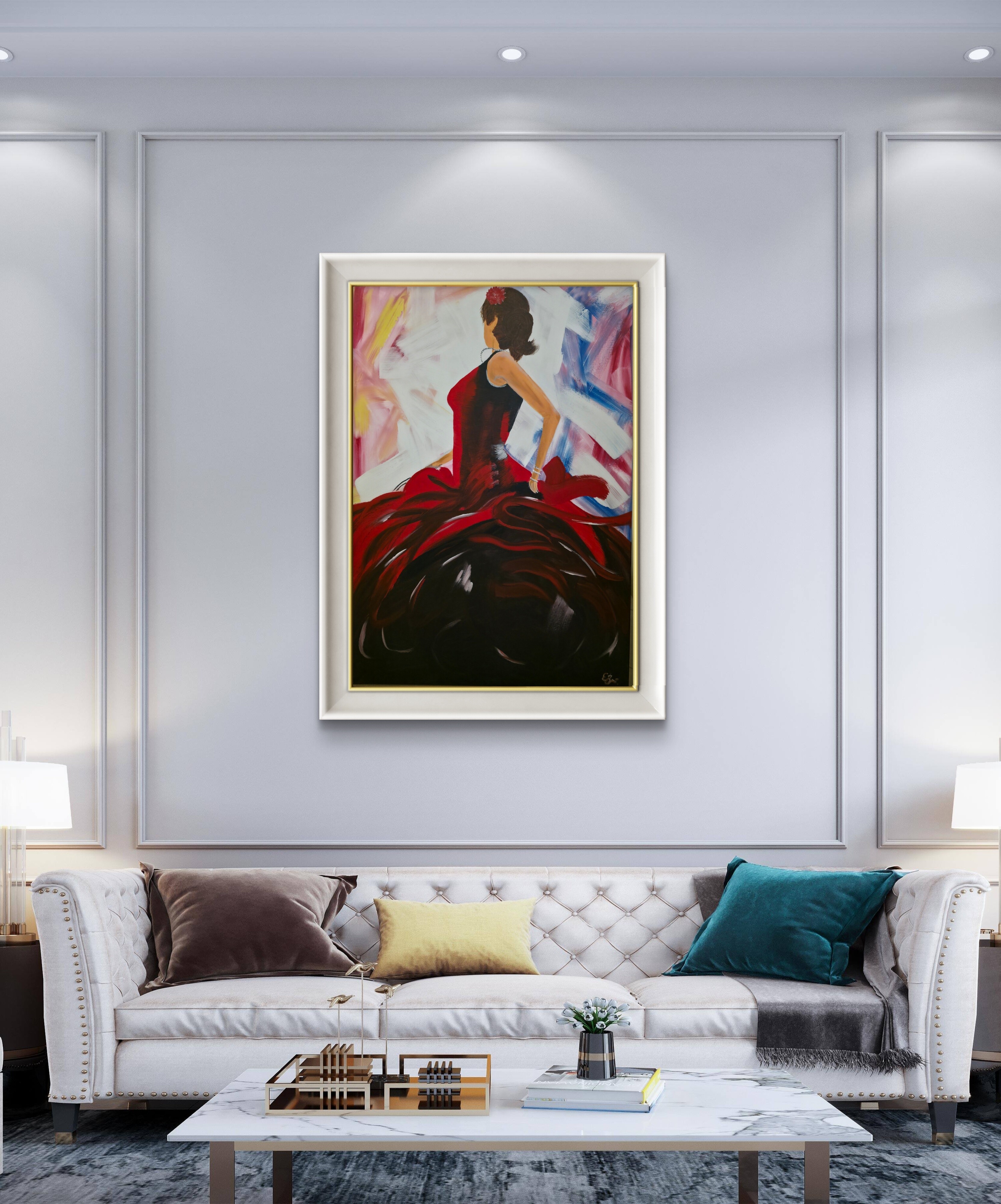 Moje obrazy mają zamalowane boki, więc kupujesz gotowe do zawieszenia na ścianie.